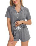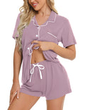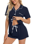 UVN Pajamas Sets for Women Button Down Short Sleeve Tops and Drawstring Shorts 2 Piece Lounge Set