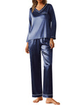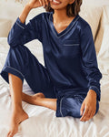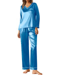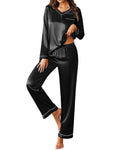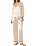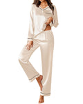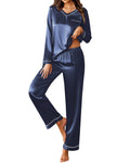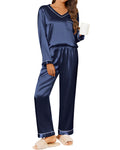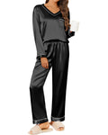 UVN Pajamas Sets for Women Fall Long Sleeve Tops and Long Pants Soft Satin Silk Pj Set Sleepwear Loungewear 2 Piece Outfit