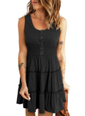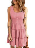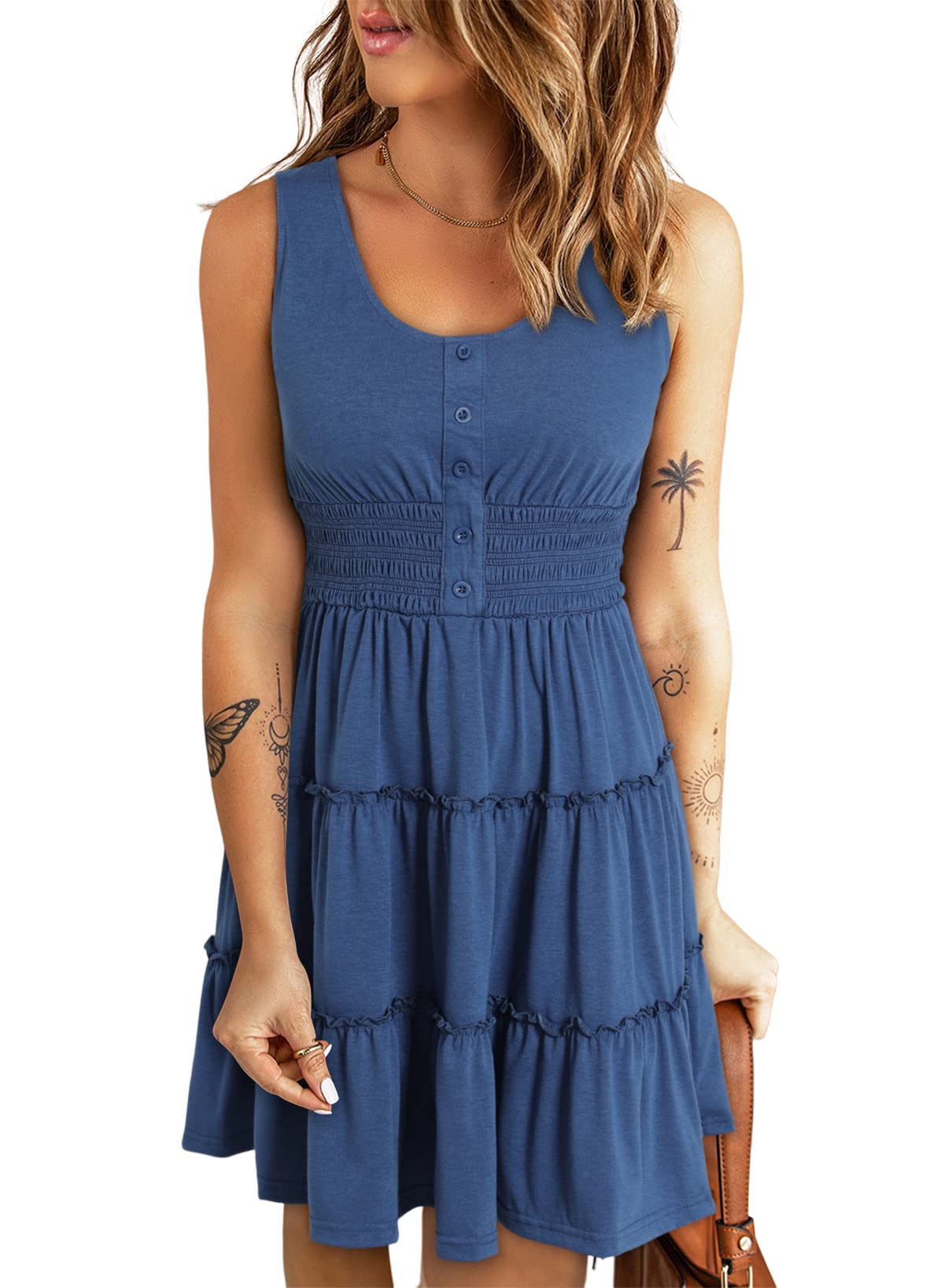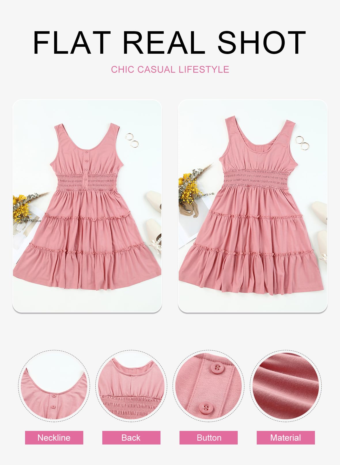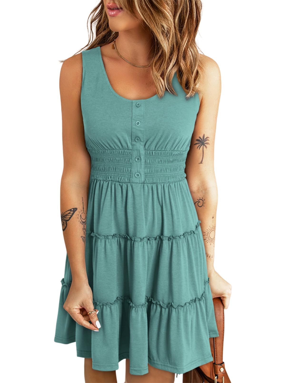 UVN Sleeveless Dresses for Women Summer Casual Button Down Sundresses Ladies Ruffle Tiered Casual Swing Beach Dress