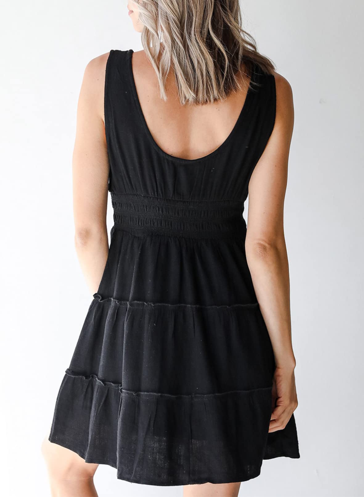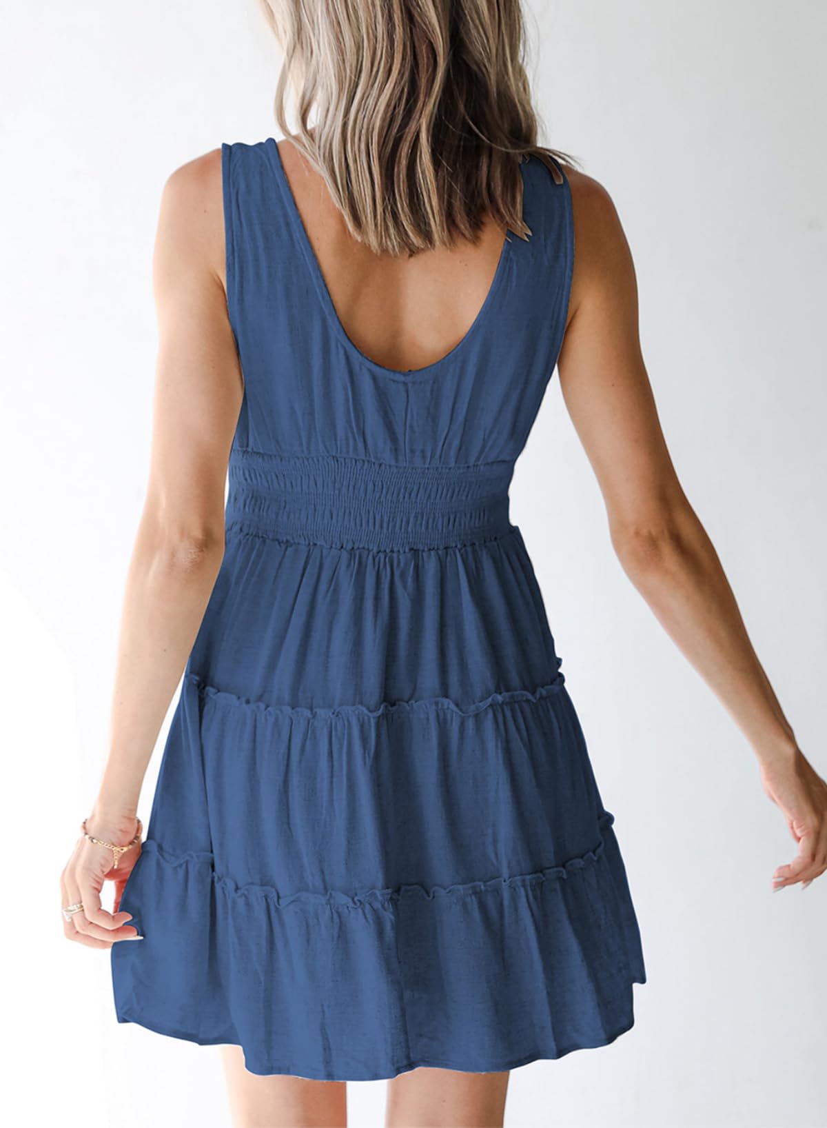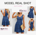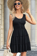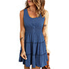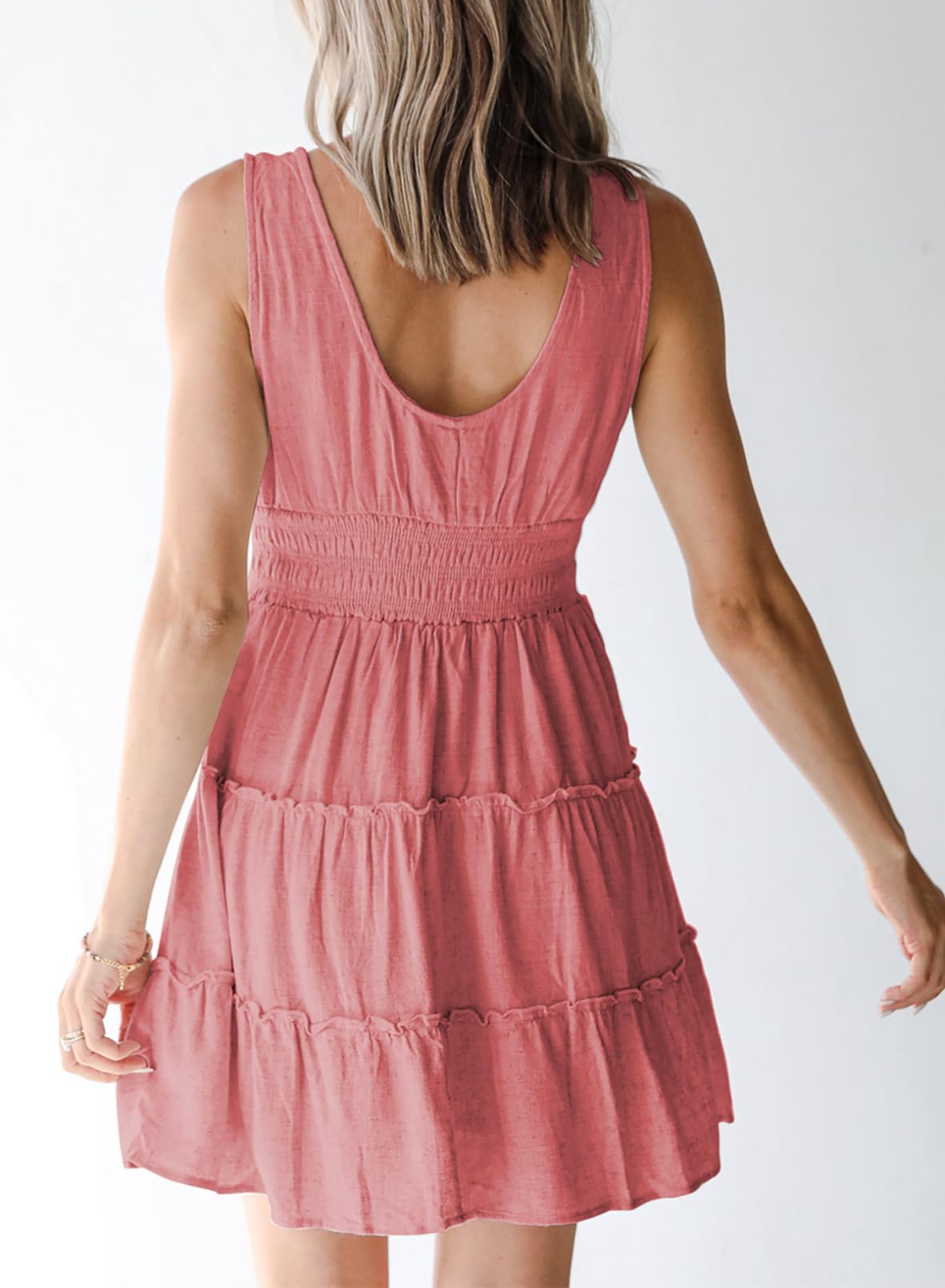 UVN Sleeveless Dresses for Women Summer Casual Button Down Sundresses Ladies Ruffle Tiered Casual Swing Beach Dress