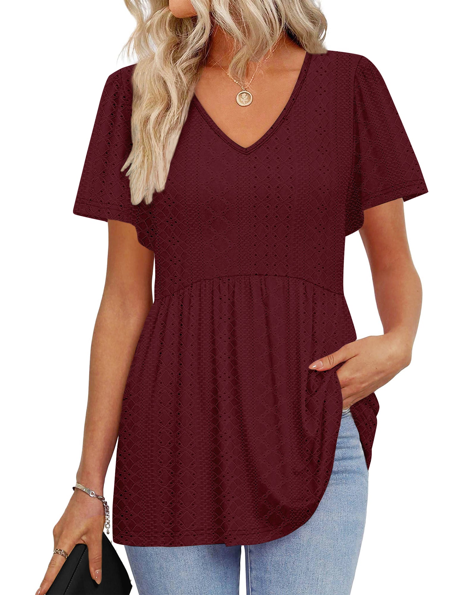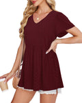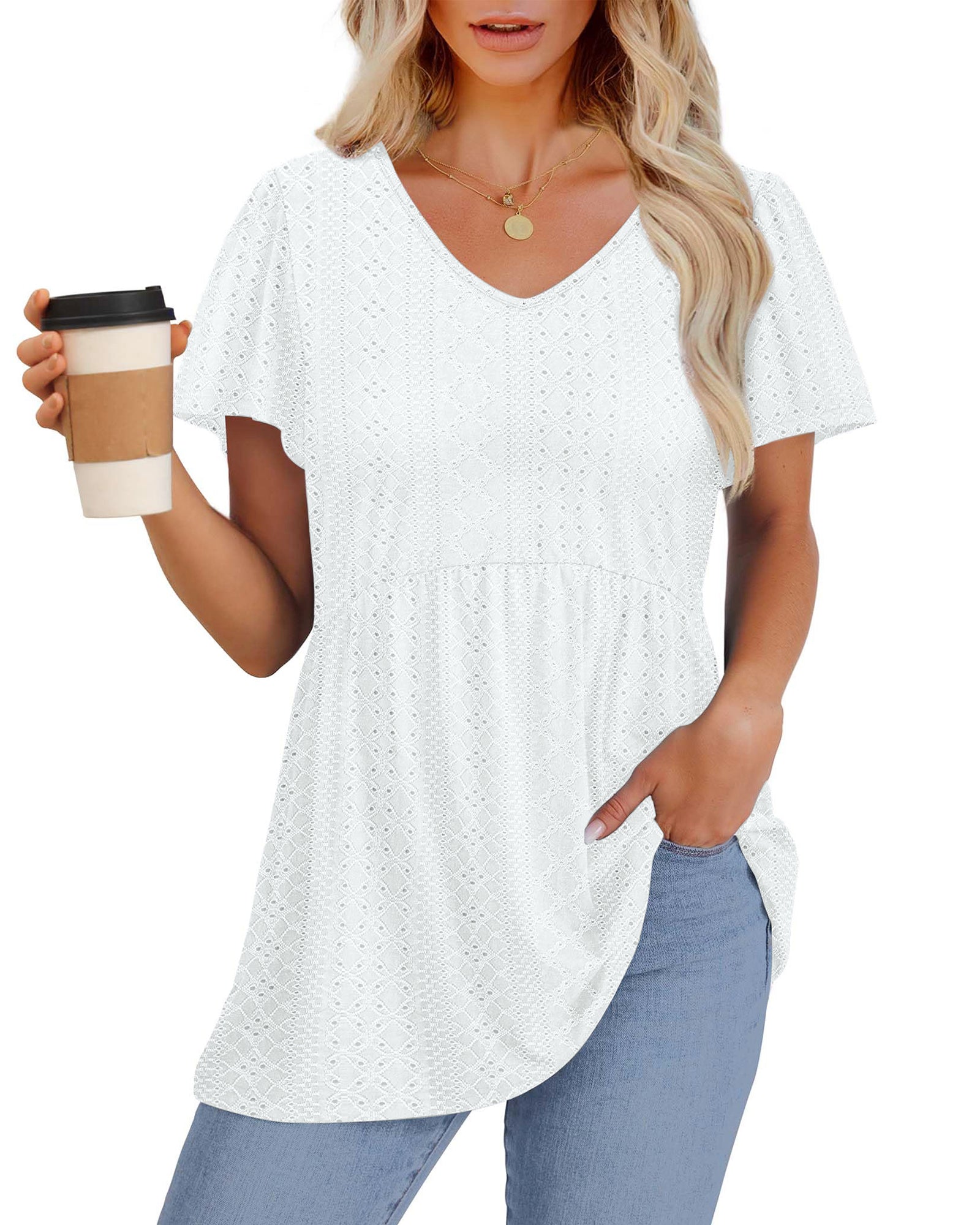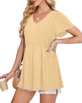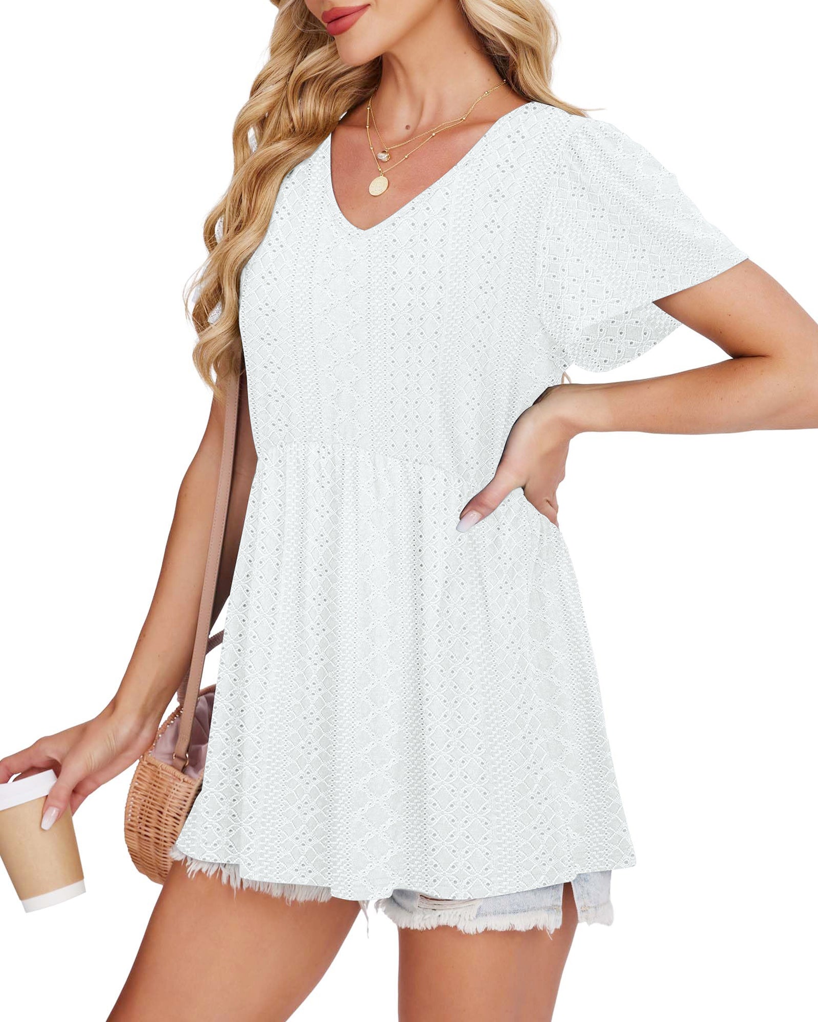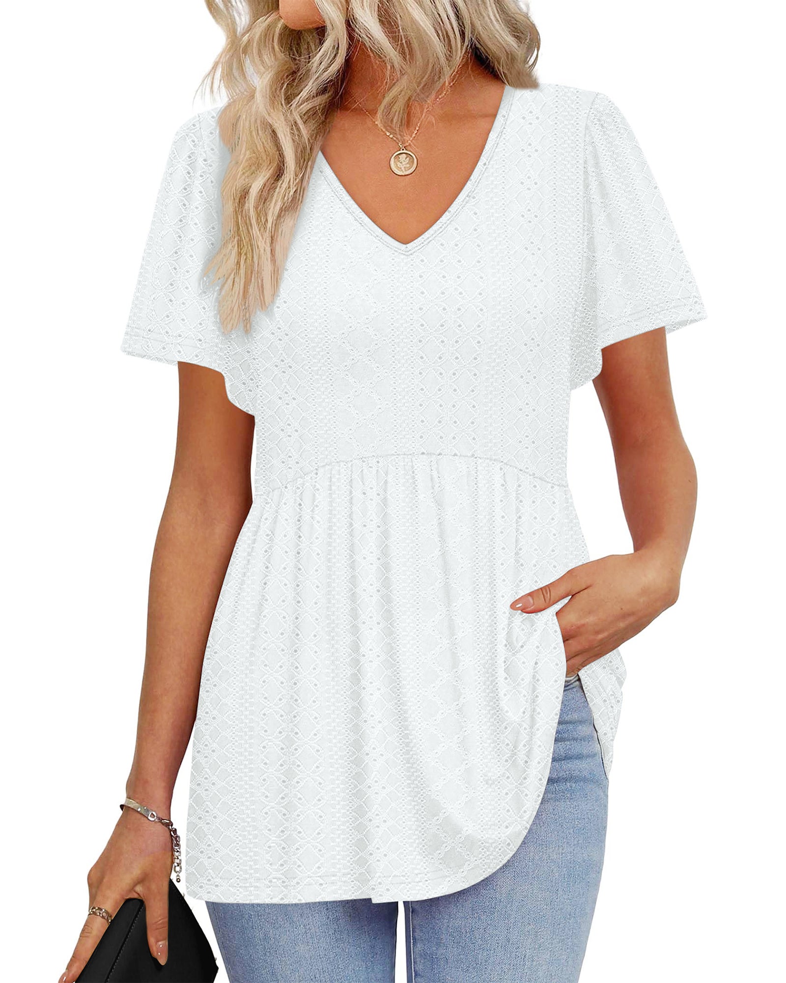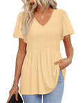 UVN Summer Blouses for Women Short Sleeve V Neck Peplum Tunic Tops Casual Babydoll Flowy T Shirts