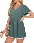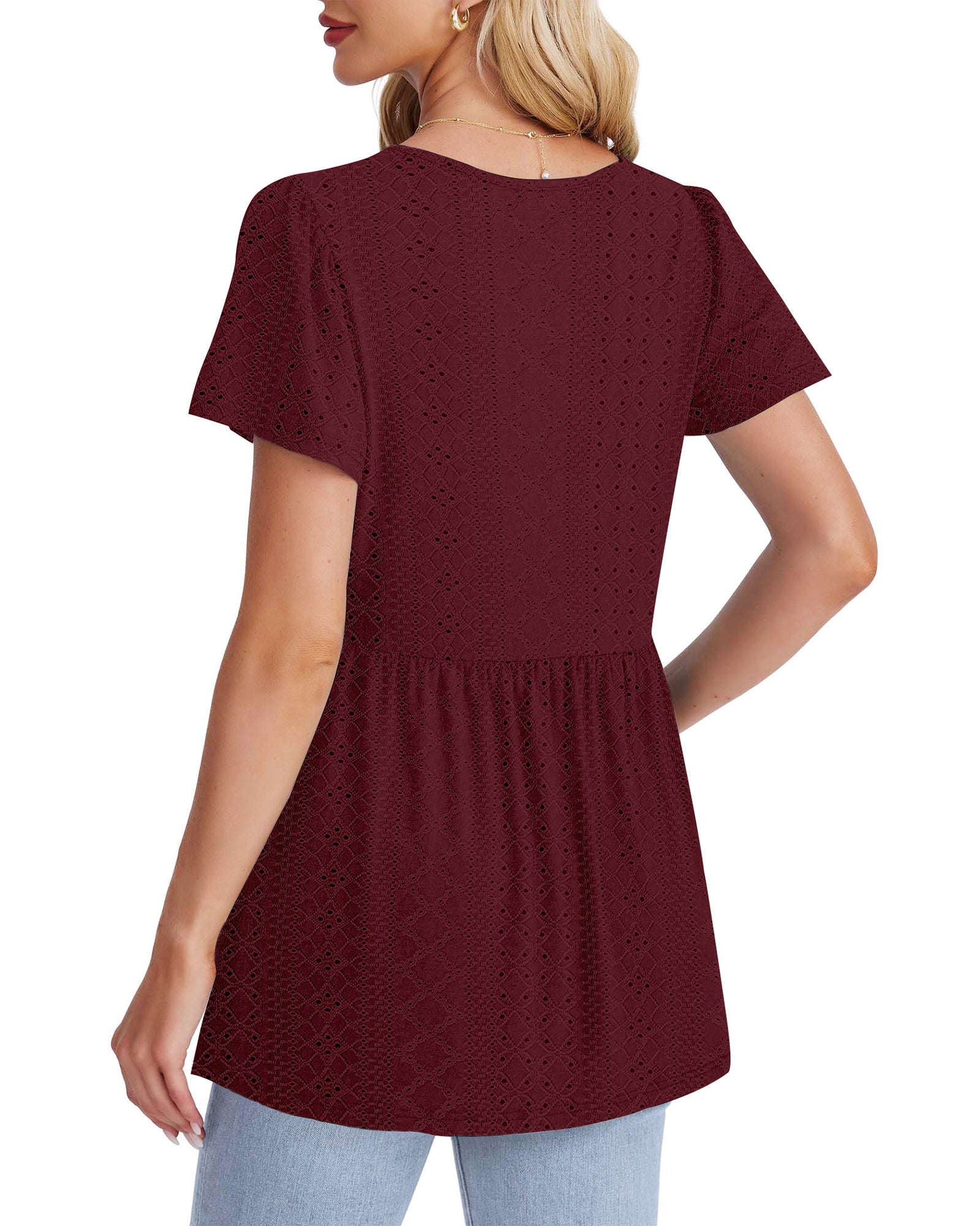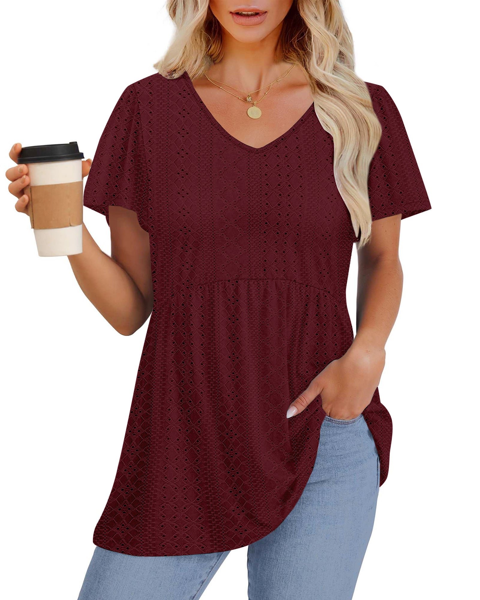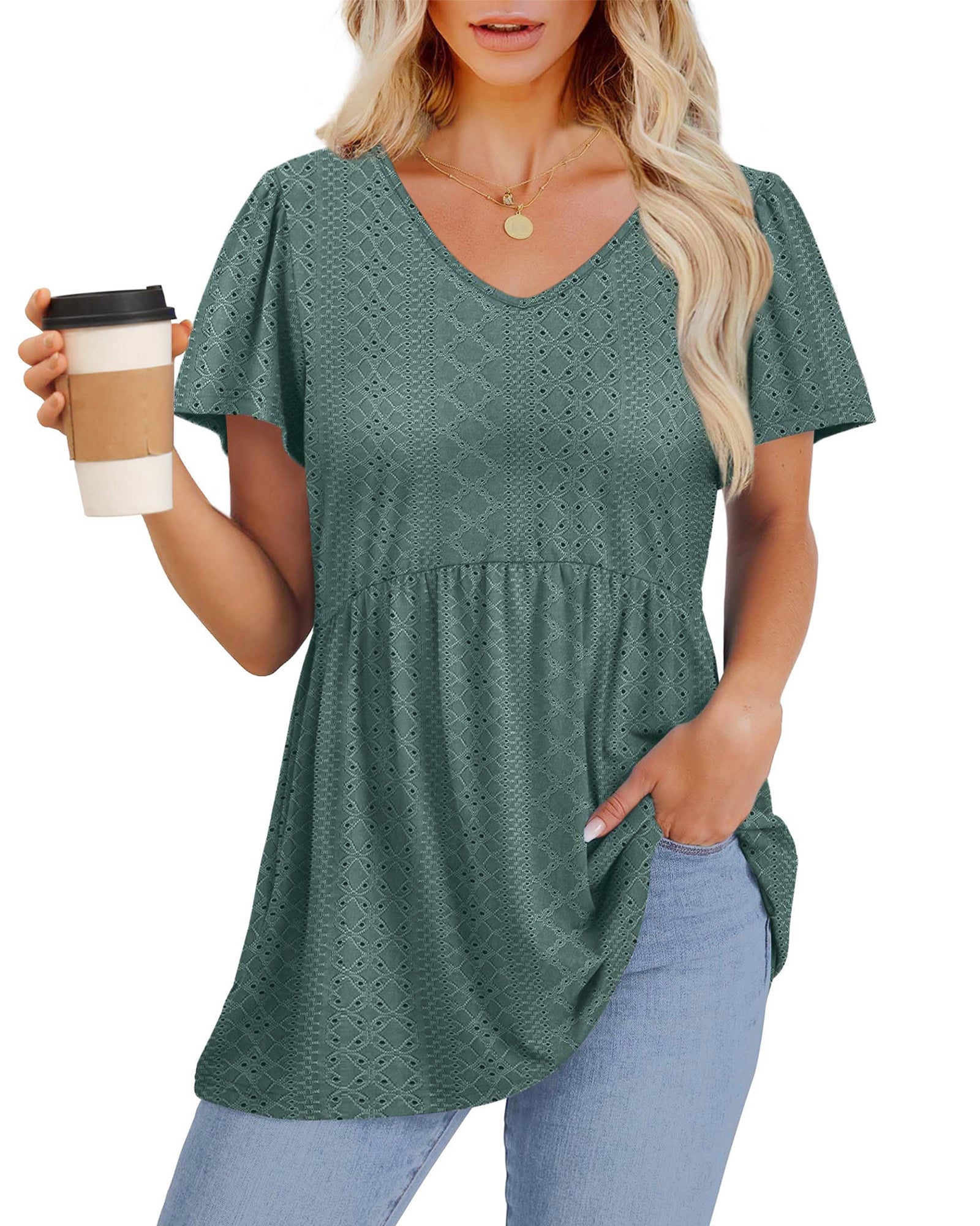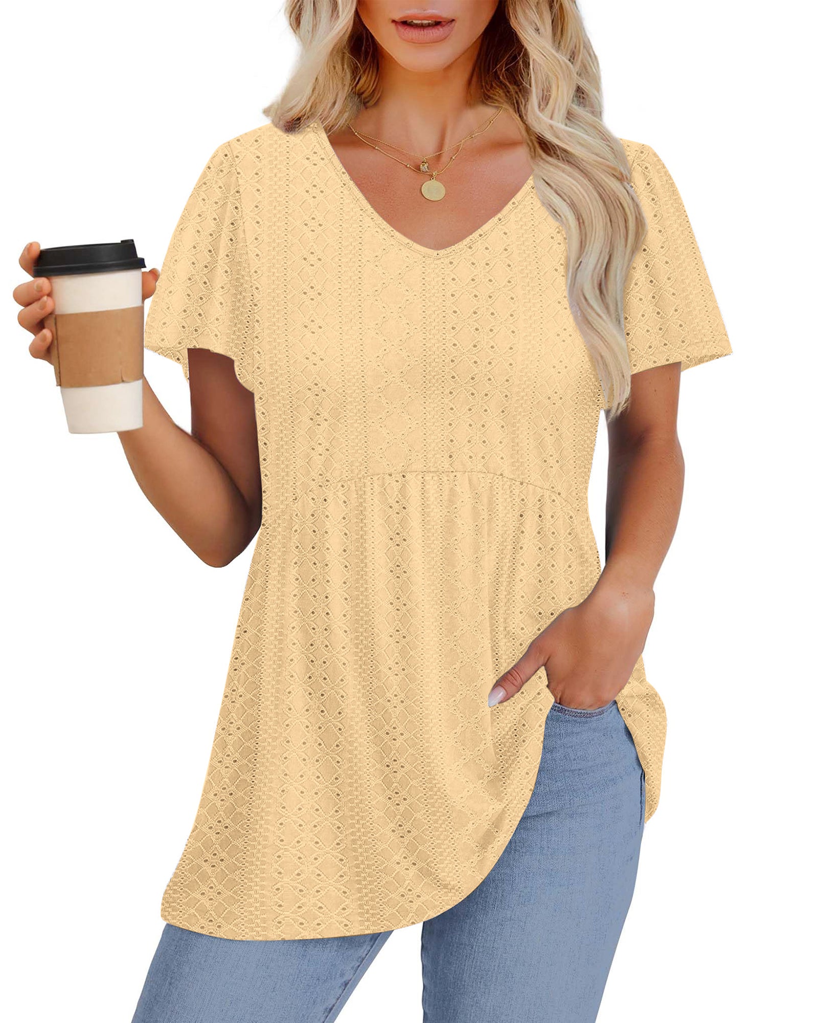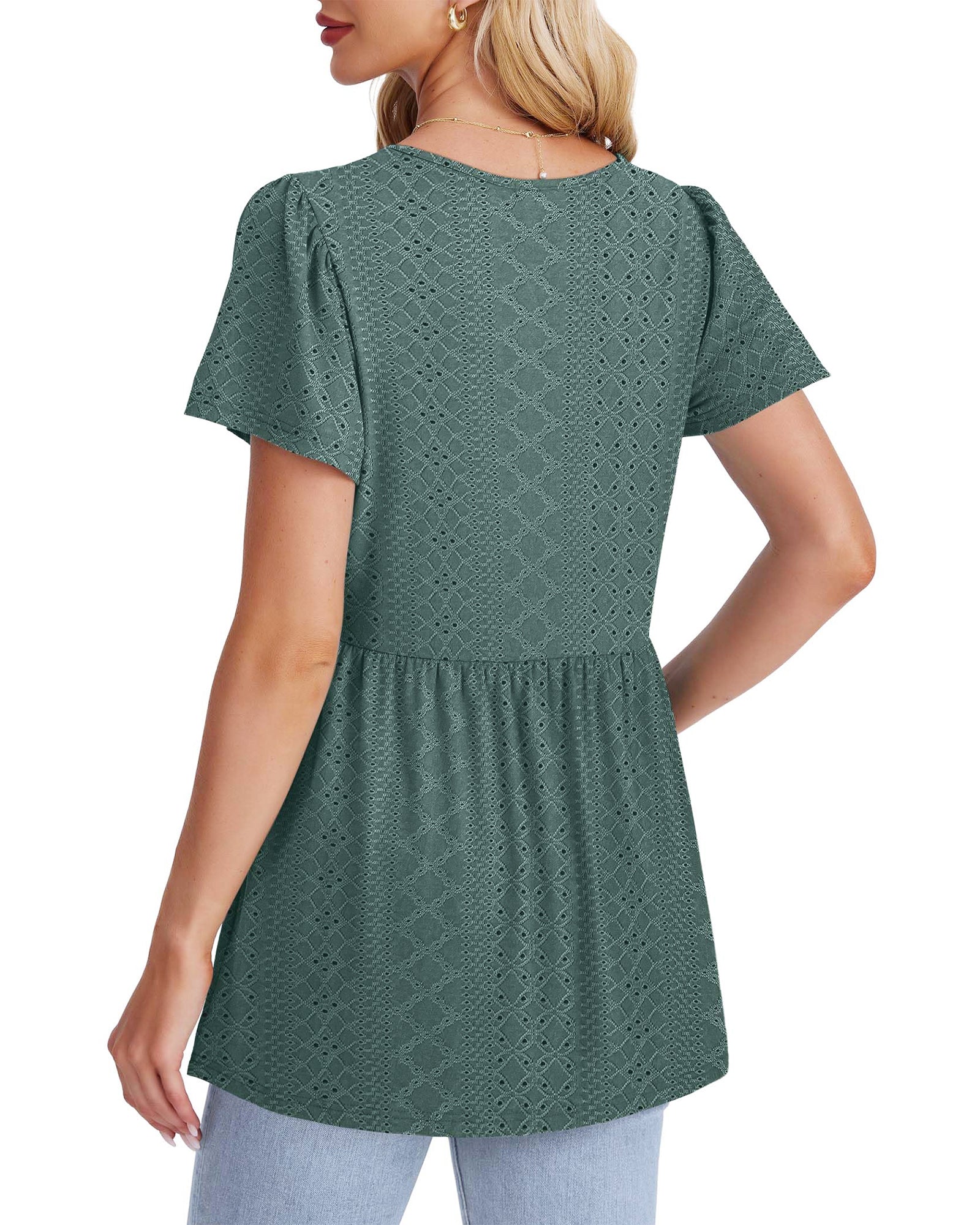 UVN Summer Blouses for Women Short Sleeve V Neck Peplum Tunic Tops Casual Babydoll Flowy T Shirts