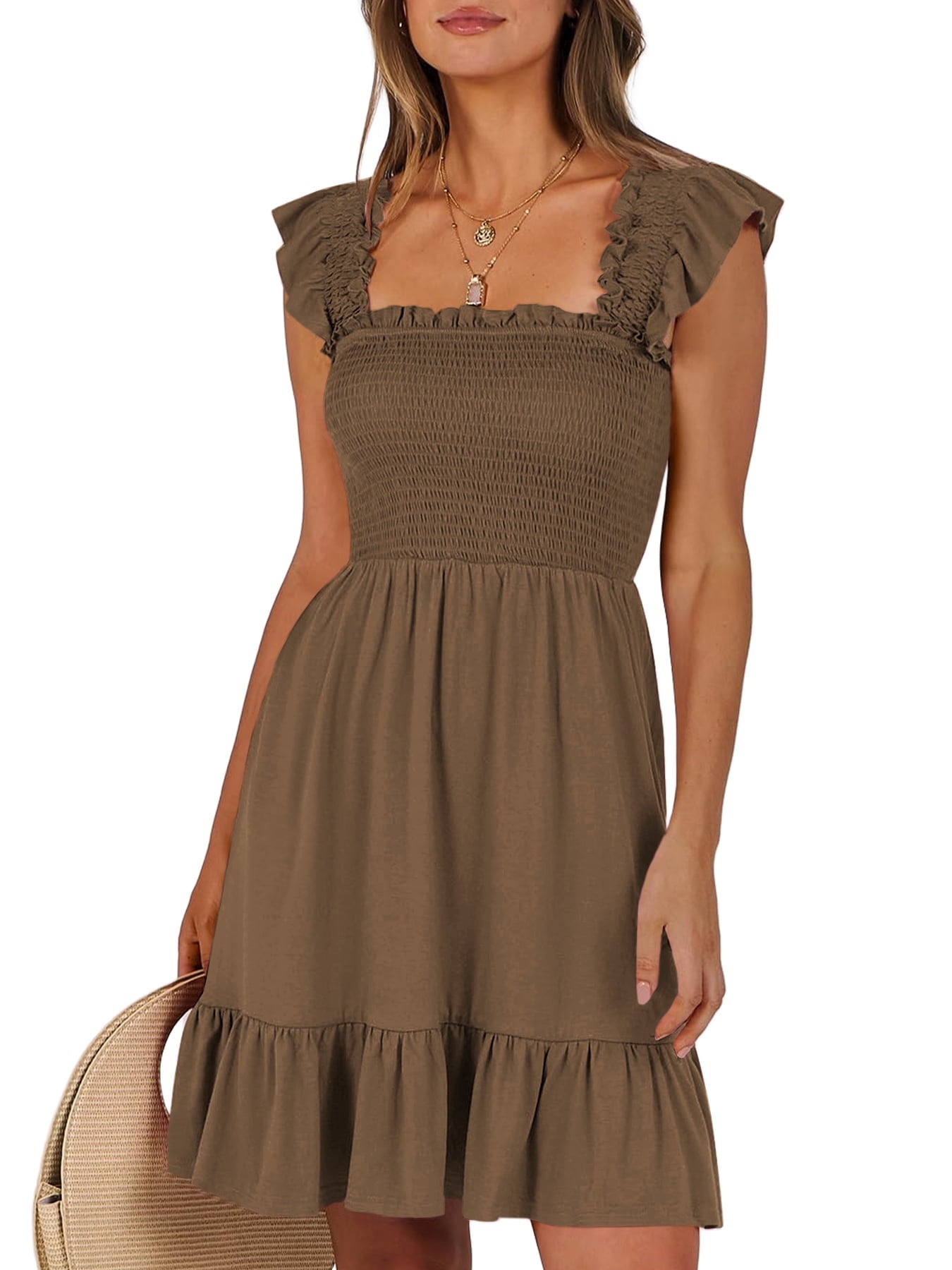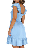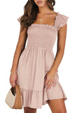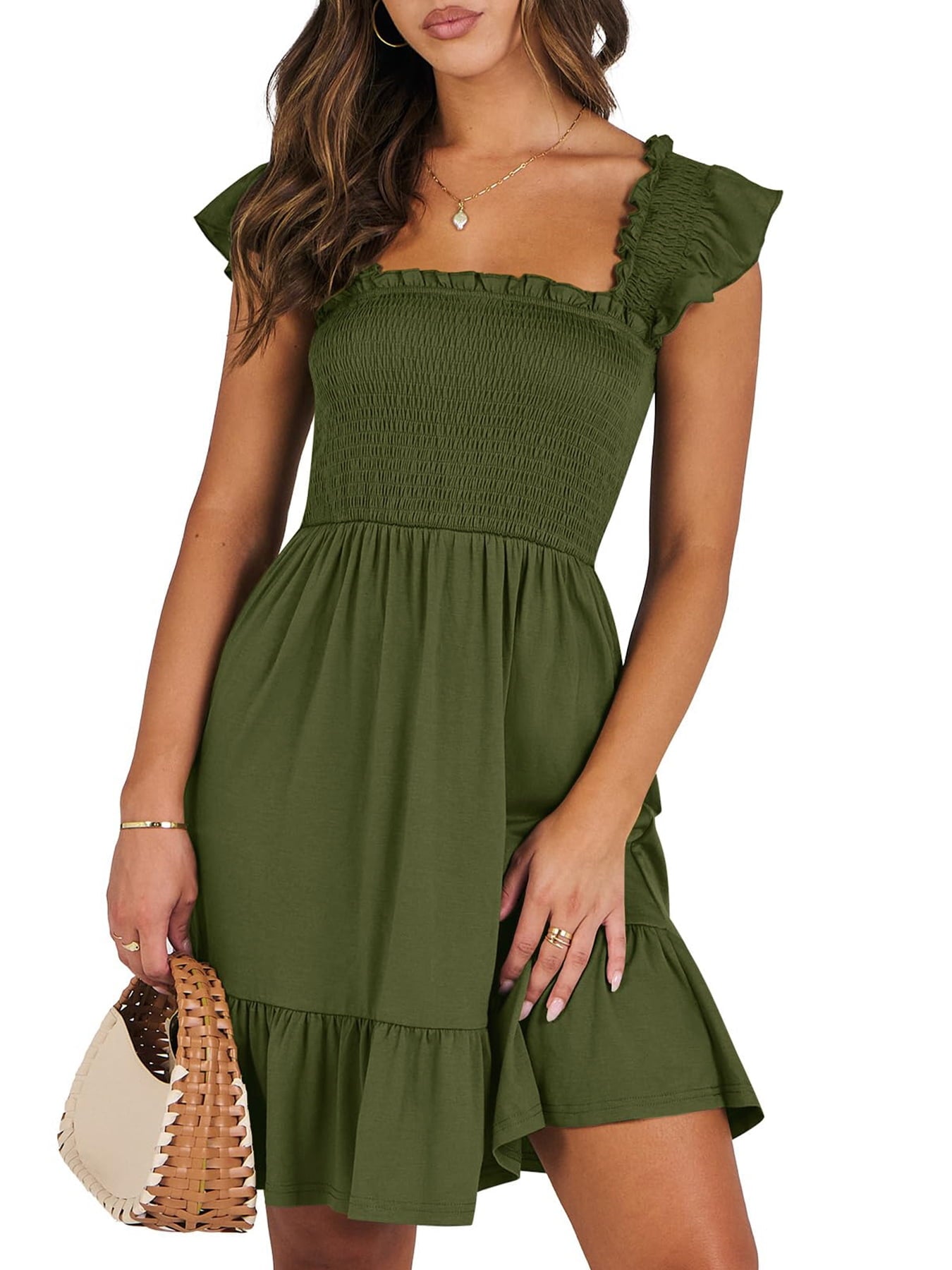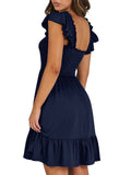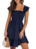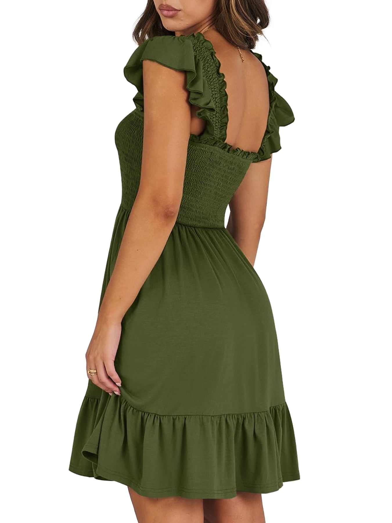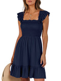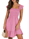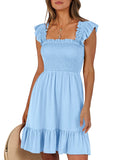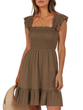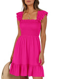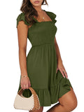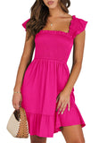 📯【Feature】This summer dress is made of an elegant ruffle shoulder design, square neck, sleeveless, swing flowy tiered hem, backless dresses, a-line midi dress, making it a cute and sweet women midi dress. The square neck of this casual dress adds a touch of elegance, making it suitable for both casual outings and more formal occasions like brunches. Its midi dress length gives a youthful and fashionable appearance, making it an ideal choice for date nights or music festivals. The backless feature of this dress is both stylish and alluring, turning heads wherever you go. The pleated hem and flowing hem of the dress are very cute and easy to move. This dress is highly inclusive and suitable for women of different body types, including regular sizes and plus sizes.