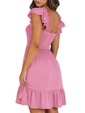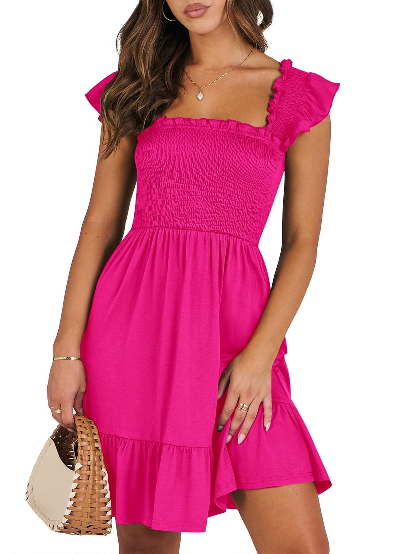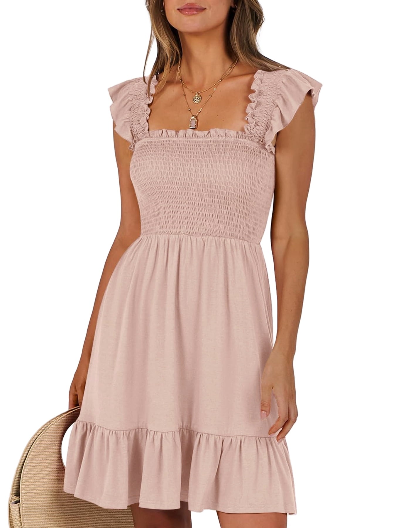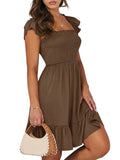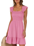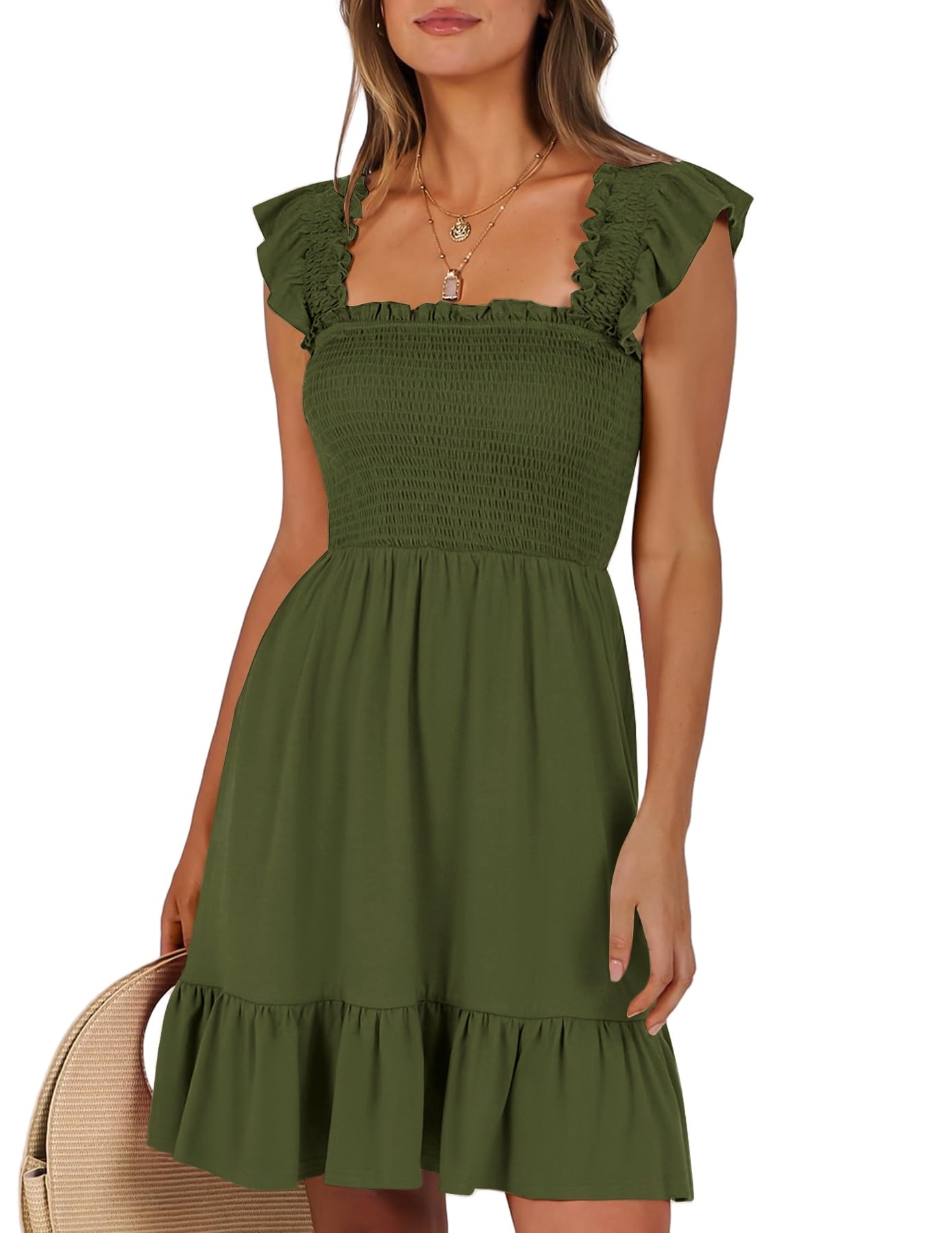 📯【Feature】This summer dress is made of an elegant ruffle shoulder design, square neck, sleeveless, swing flowy tiered hem, backless dresses, a-line midi dress, making it a cute and sweet women midi dress. The square neck of this casual dress adds a touch of elegance, making it suitable for both casual outings and more formal occasions like brunches. Its midi dress length gives a youthful and fashionable appearance, making it an ideal choice for date nights or music festivals. The backless feature of this dress is both stylish and alluring, turning heads wherever you go. The pleated hem and flowing hem of the dress are very cute and easy to move. This dress is highly inclusive and suitable for women of different body types, including regular sizes and plus sizes.