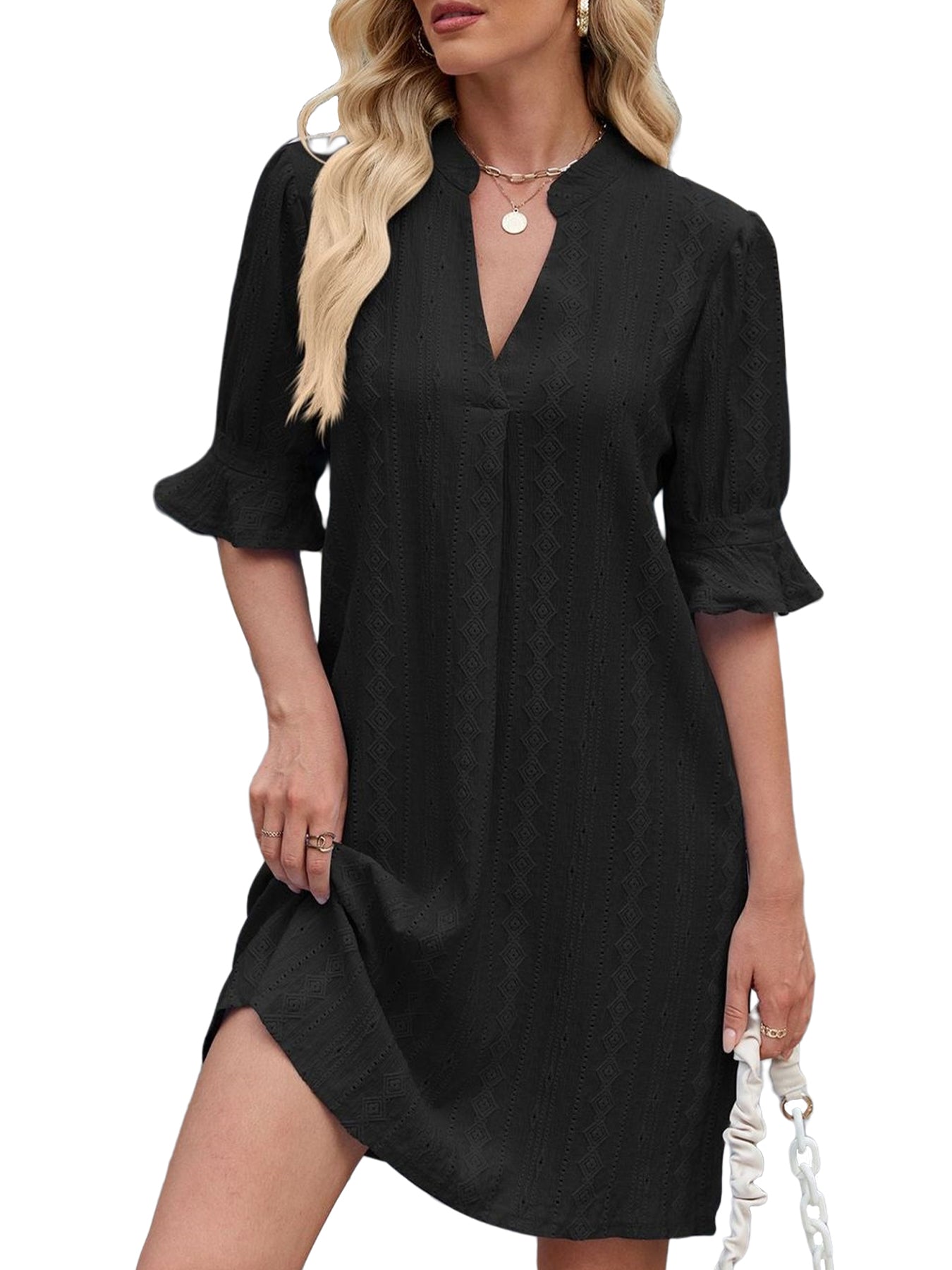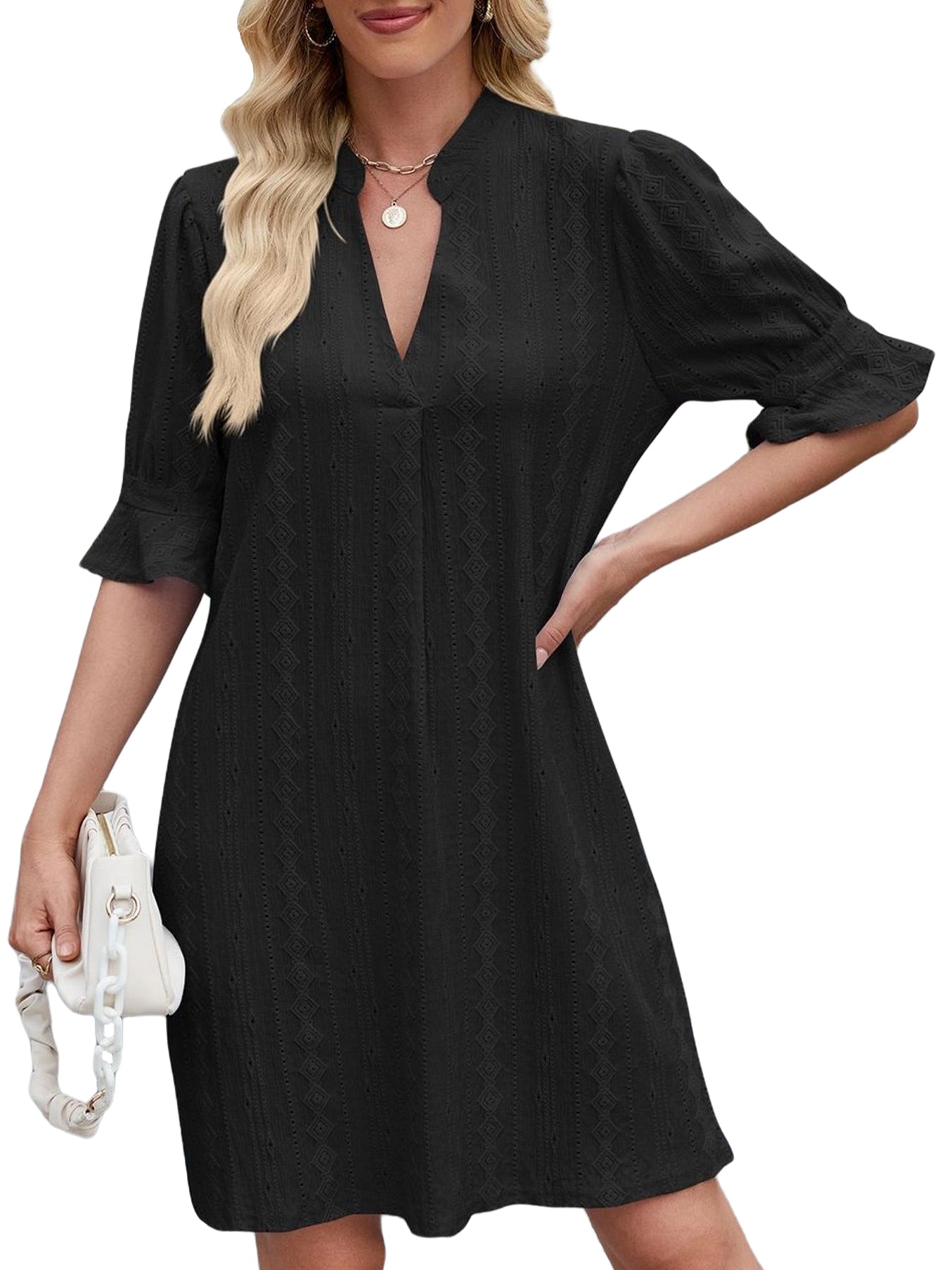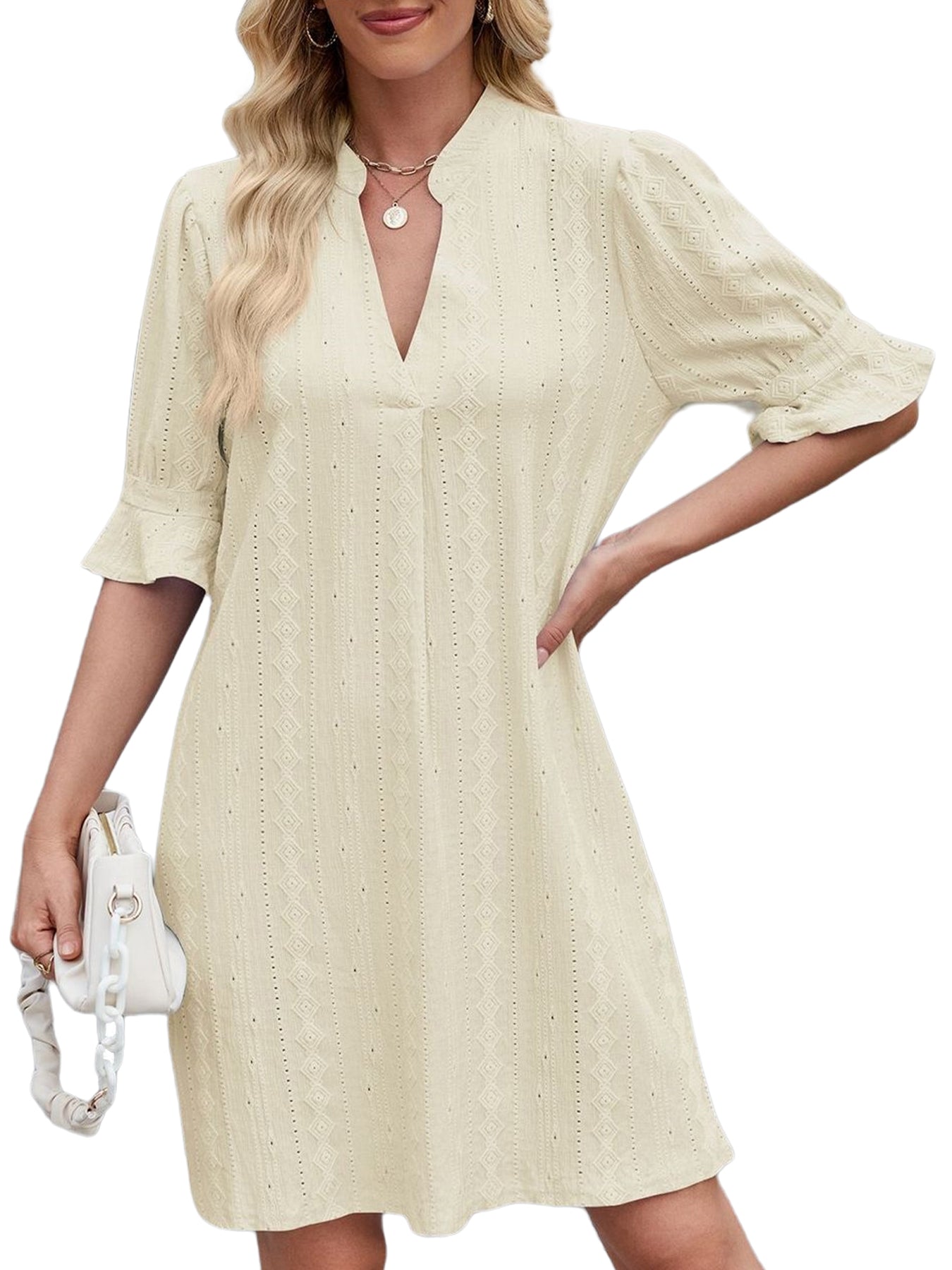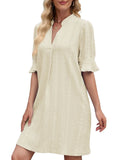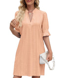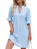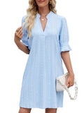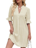 Elevate your summer wardrobe with the UVN summer dresses for women. This amazing ruffle short sleeve dress combines effortless style with comfort, featuring a casual v neck design that flatters every woman. Whether you're attending a garden party, enjoying a day at the beach, or simply hanging out with friends, this versatile t shirt dress is your go-to option.
