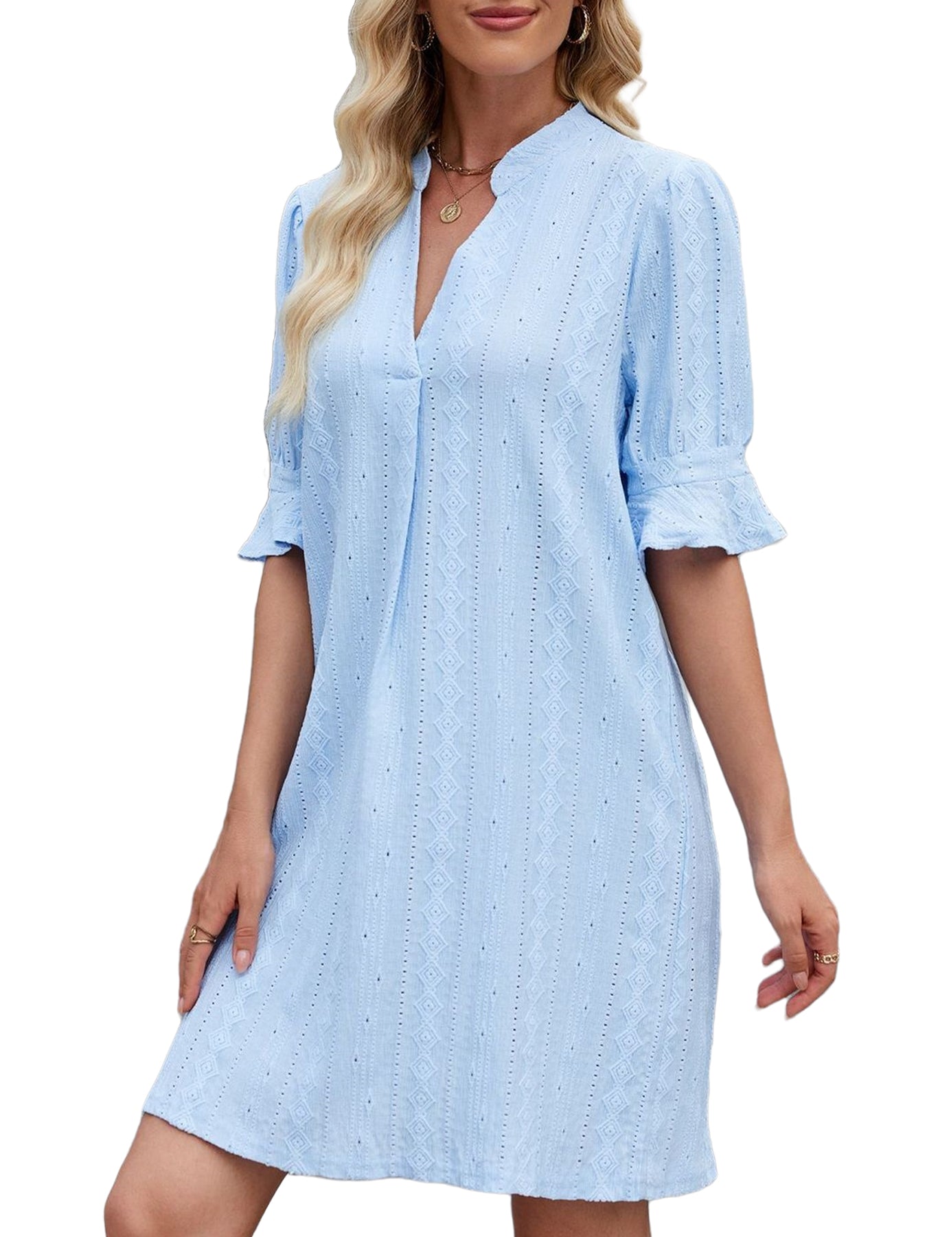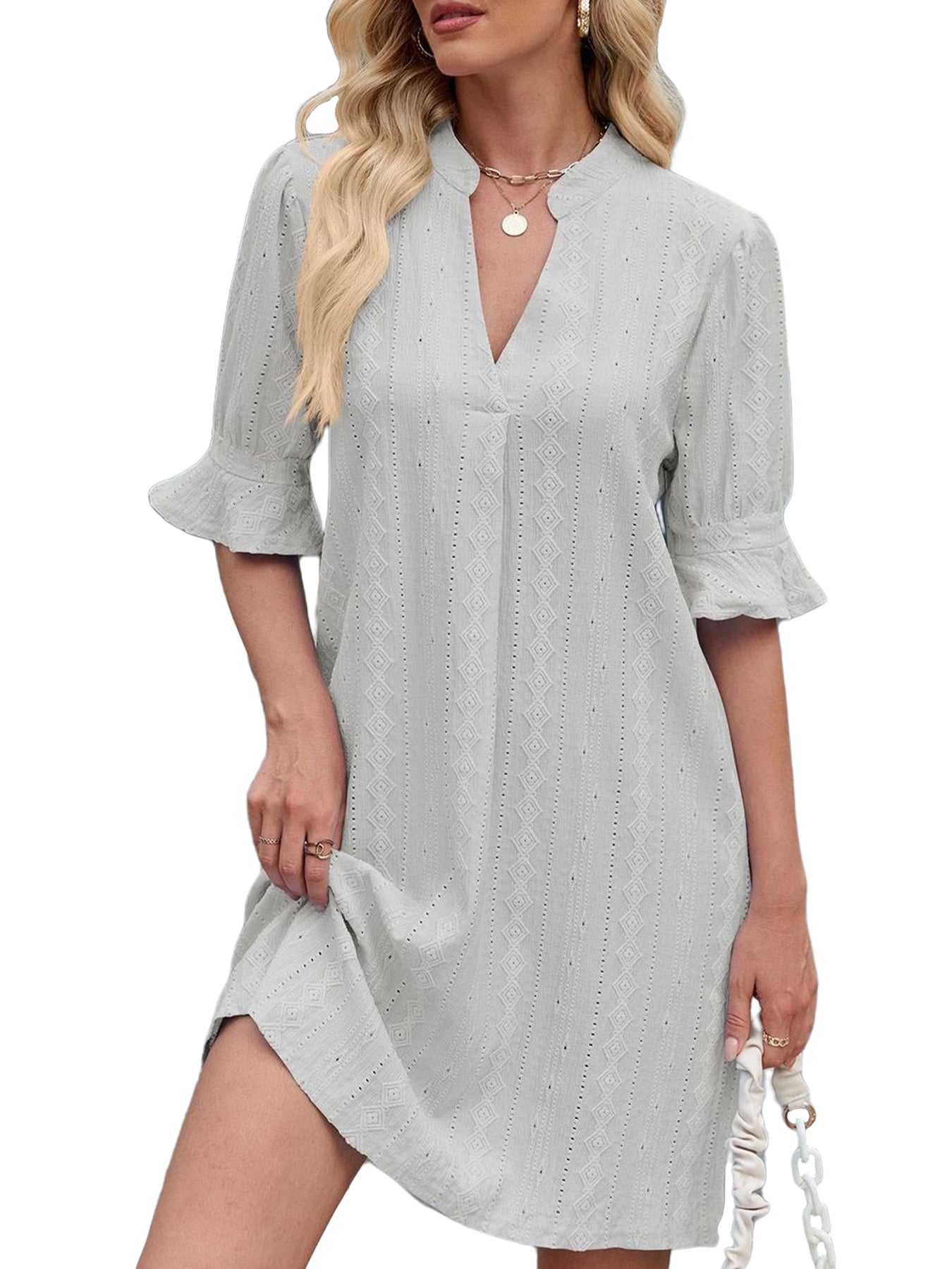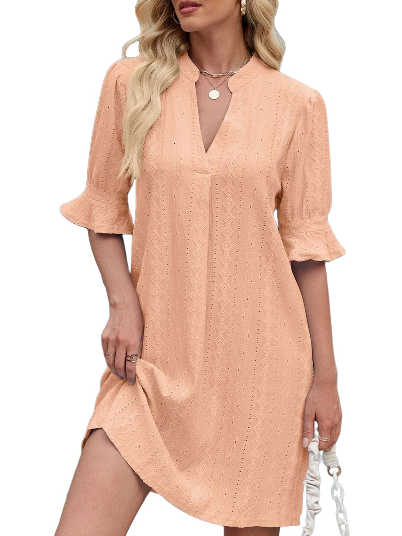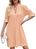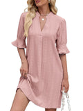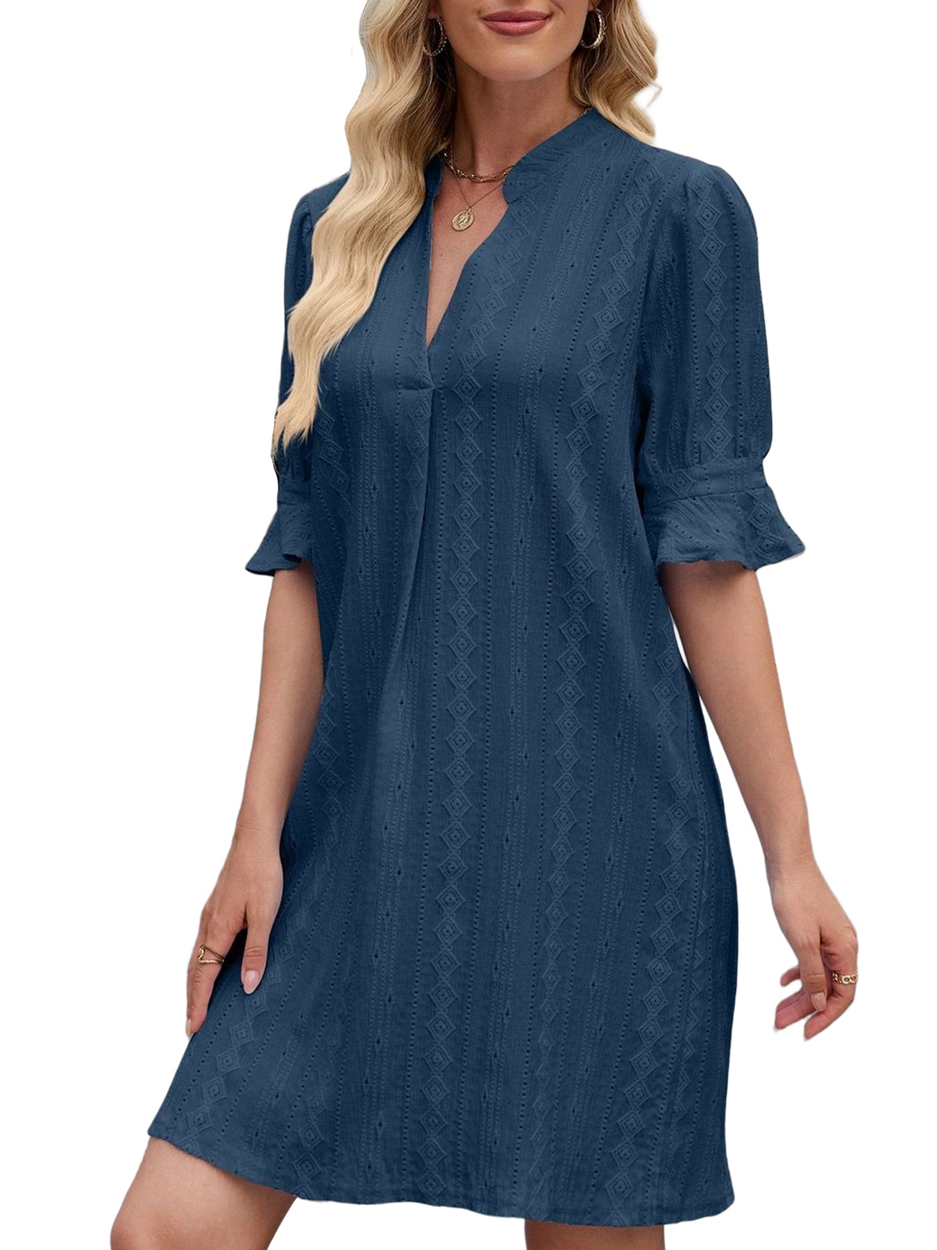 Elevate your summer wardrobe with the UVN summer dresses for women. This amazing ruffle short sleeve dress combines effortless style with comfort, featuring a casual v neck design that flatters every woman. Whether you're attending a garden party, enjoying a day at the beach, or simply hanging out with friends, this versatile t shirt dress is your go-to option.