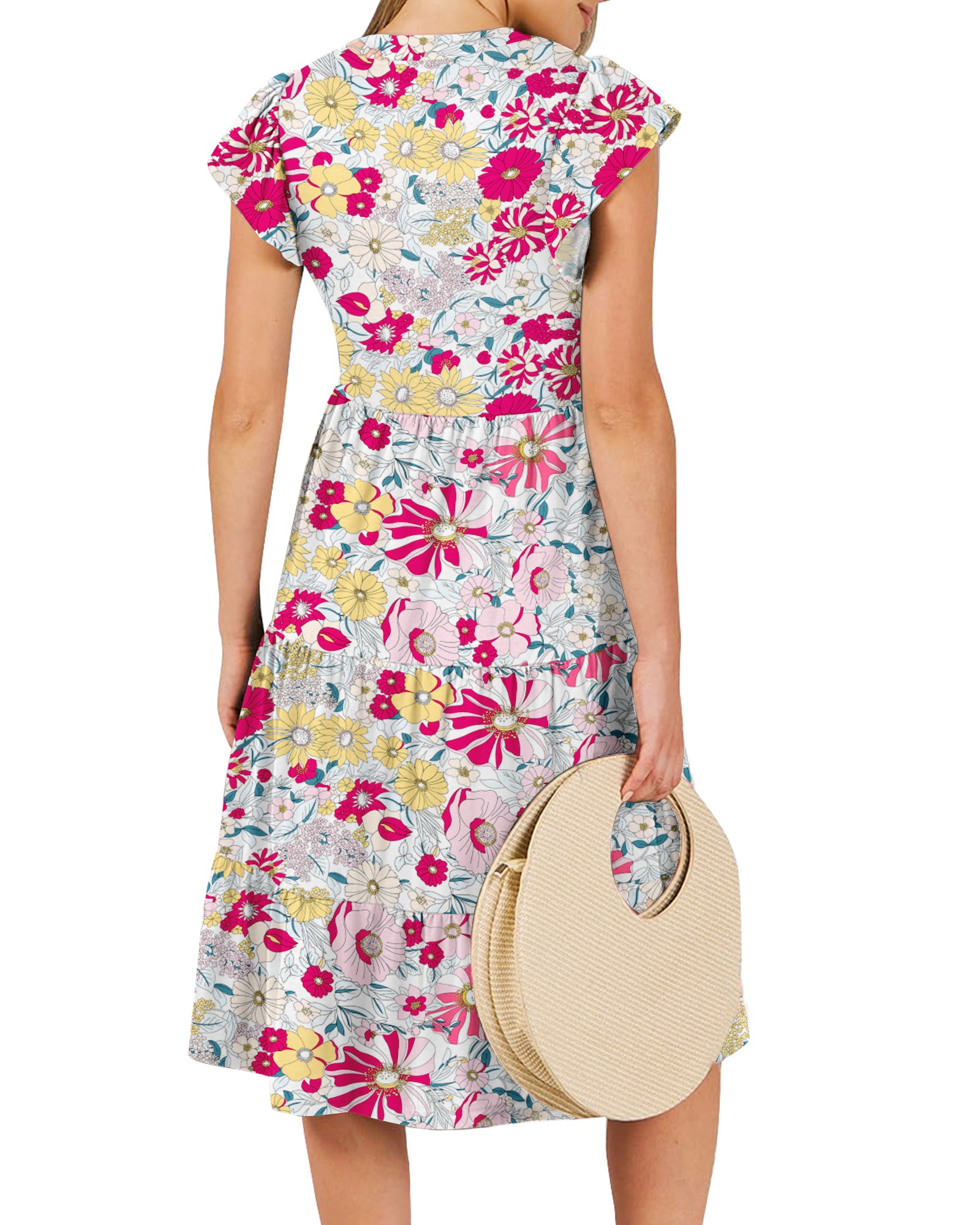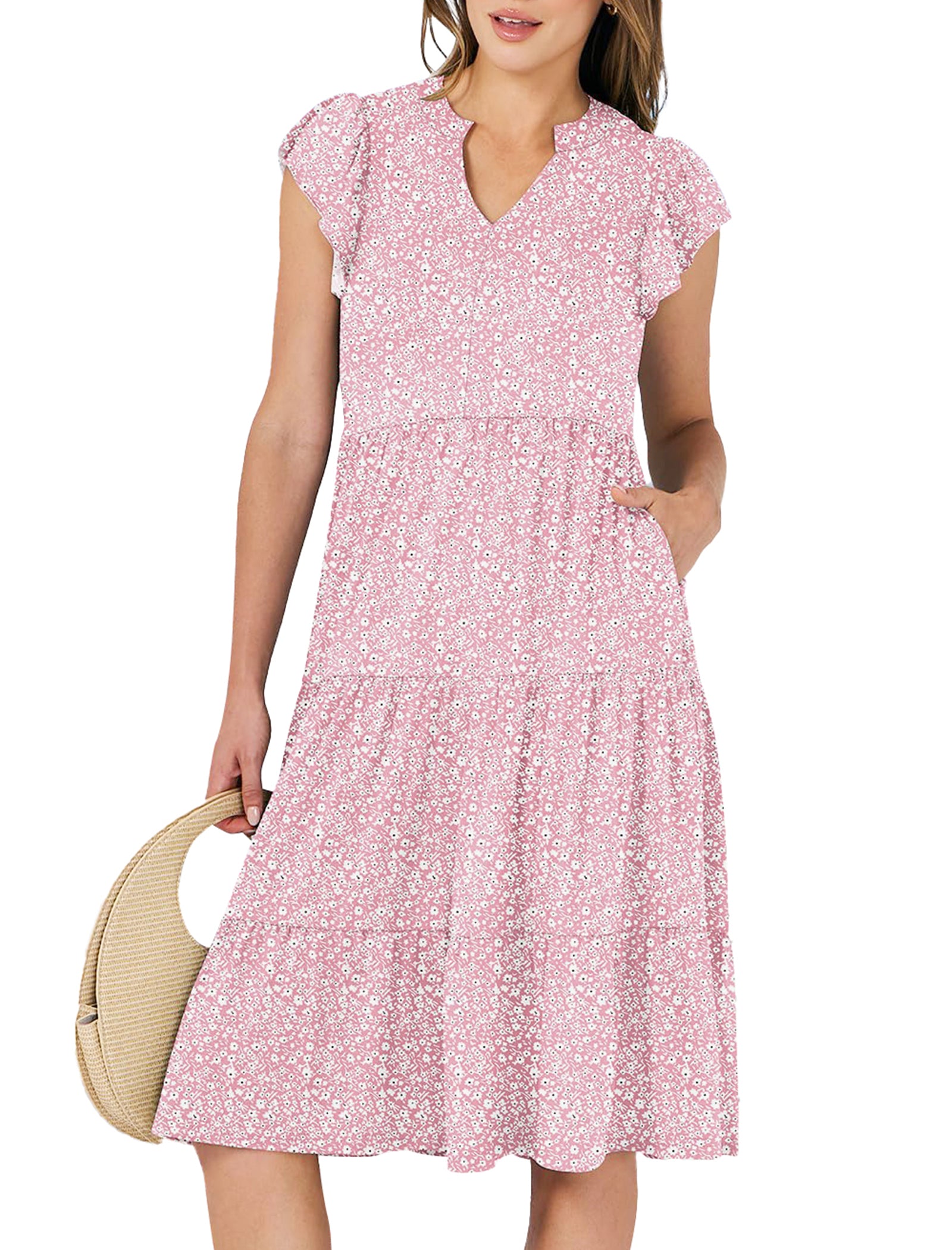 👗【Unique Features】Adorned with charming ruffled sleeves, v neck, loose fit, ruched and pleated skirt, pockets, solid color and floral tiered boho midi dress, this summer dress is a perfect choice for the bold and fashion-forward woman who wants to make a statement.