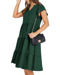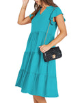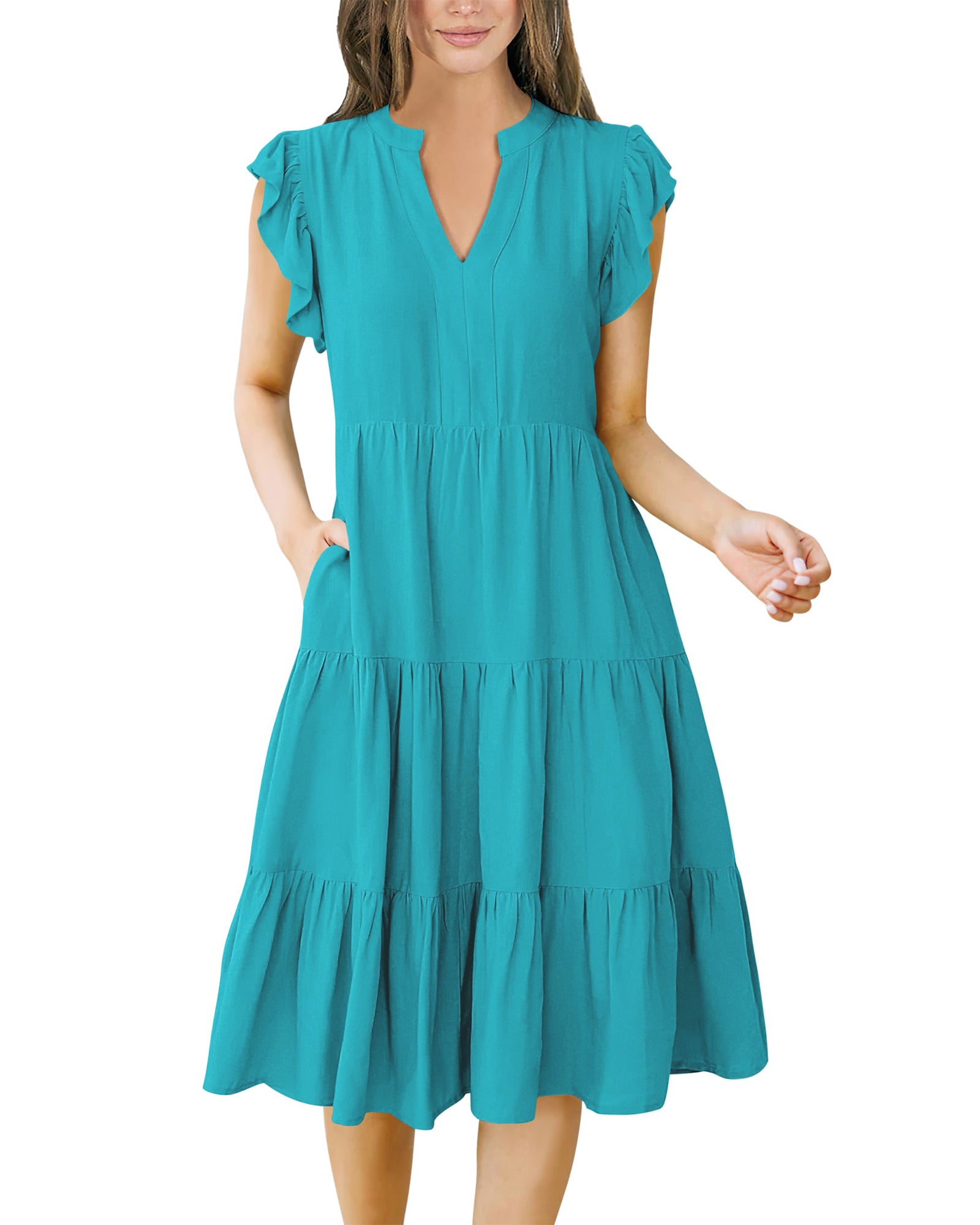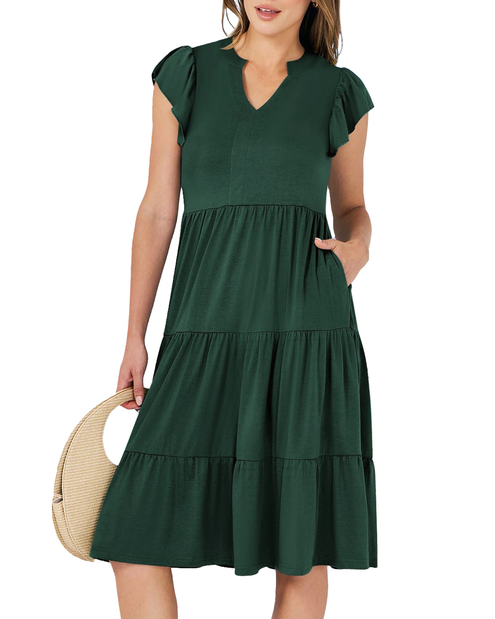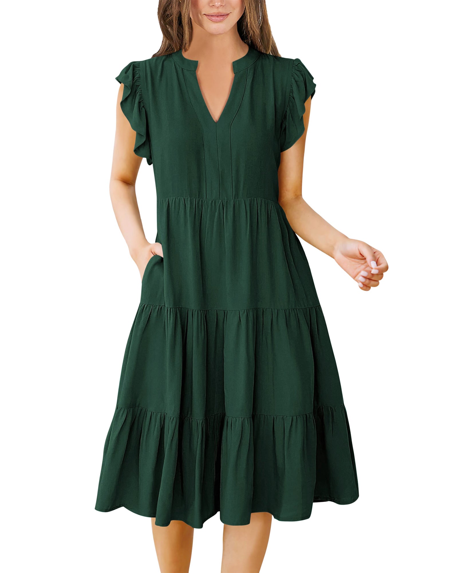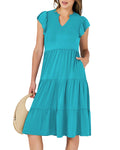 UVN Summer Dresses for Women Ruffle Sleeve V Neck Midi Dress Casual Beach Sundress with Pockets