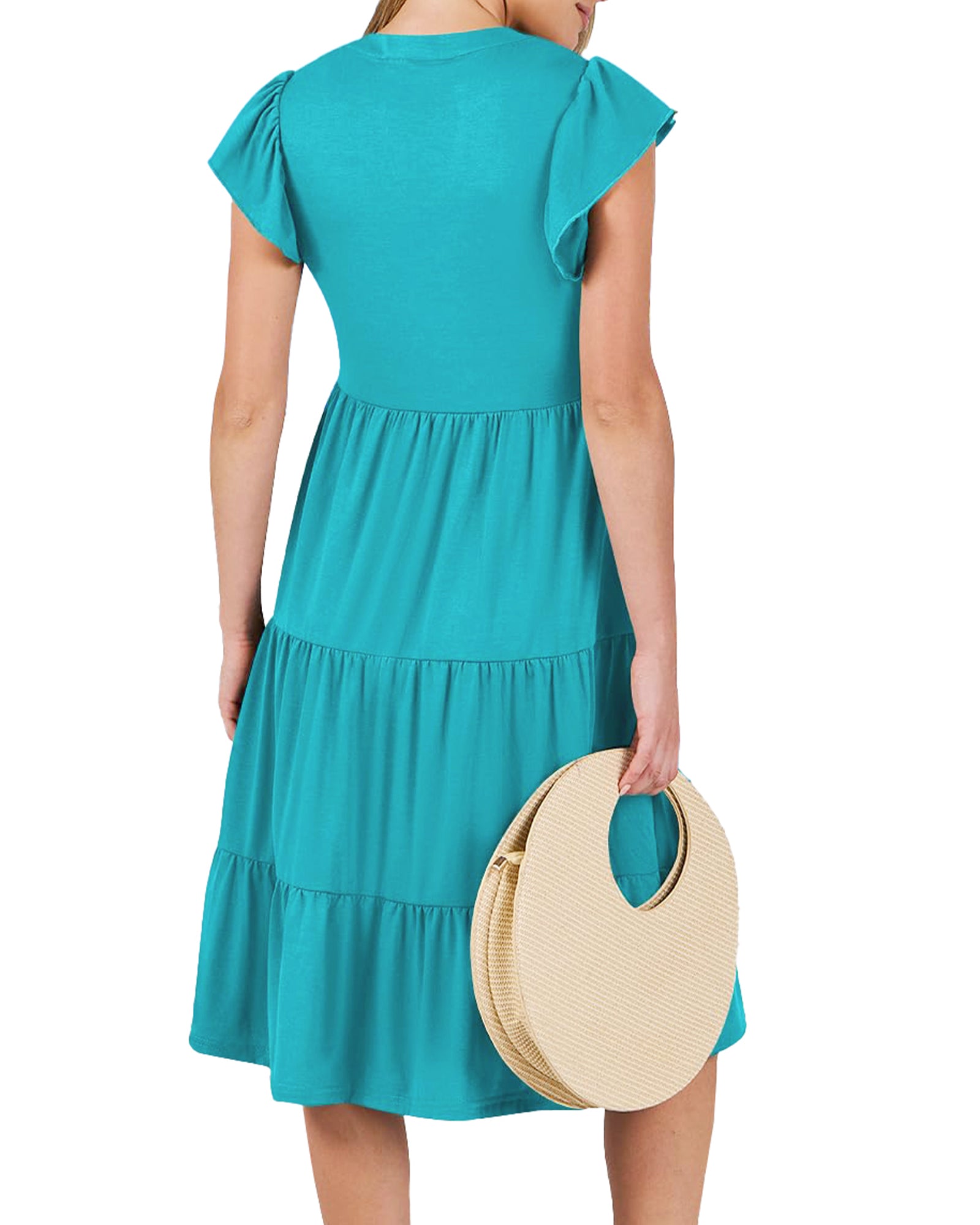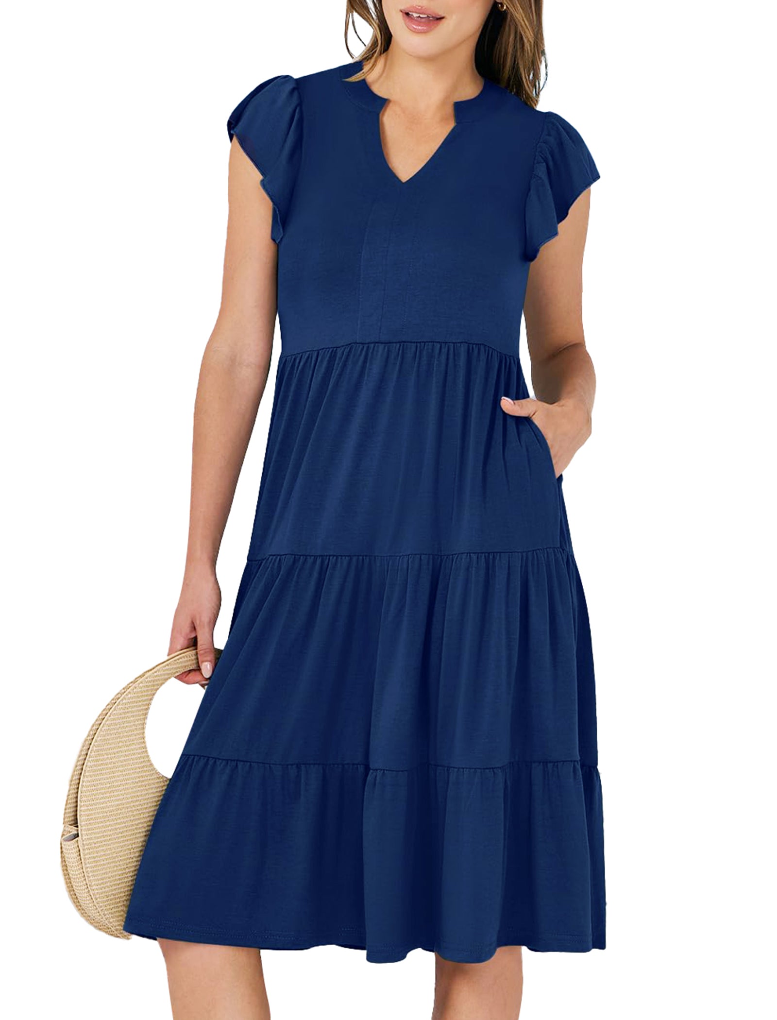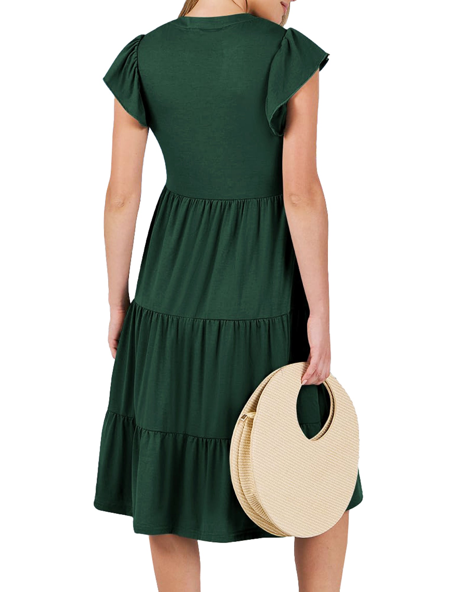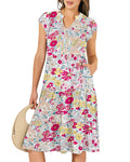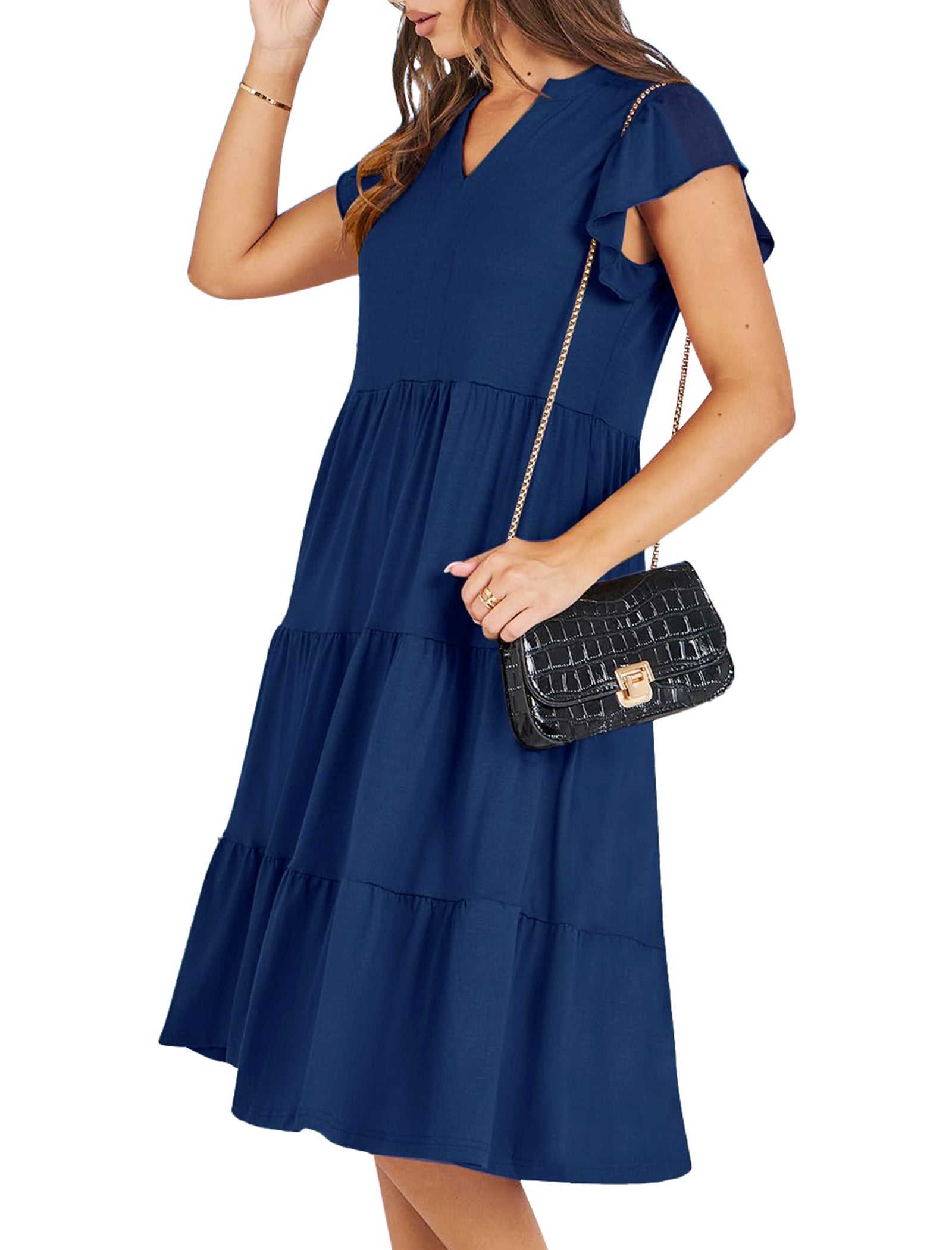 UVN Summer Dresses for Women Ruffle Sleeve V Neck Midi Dress Casual Beach Sundress with Pockets