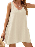 This swimsuit coverups for women are designed with v neck, pom swiss dots and pocket. Womens bathing suit cover up is made from soft, lightweight and breathable fabric. Ensure you stay cool and comfortable on those hot beach days. The tank dress will be an indispensable fashion item on the beach in the summer.