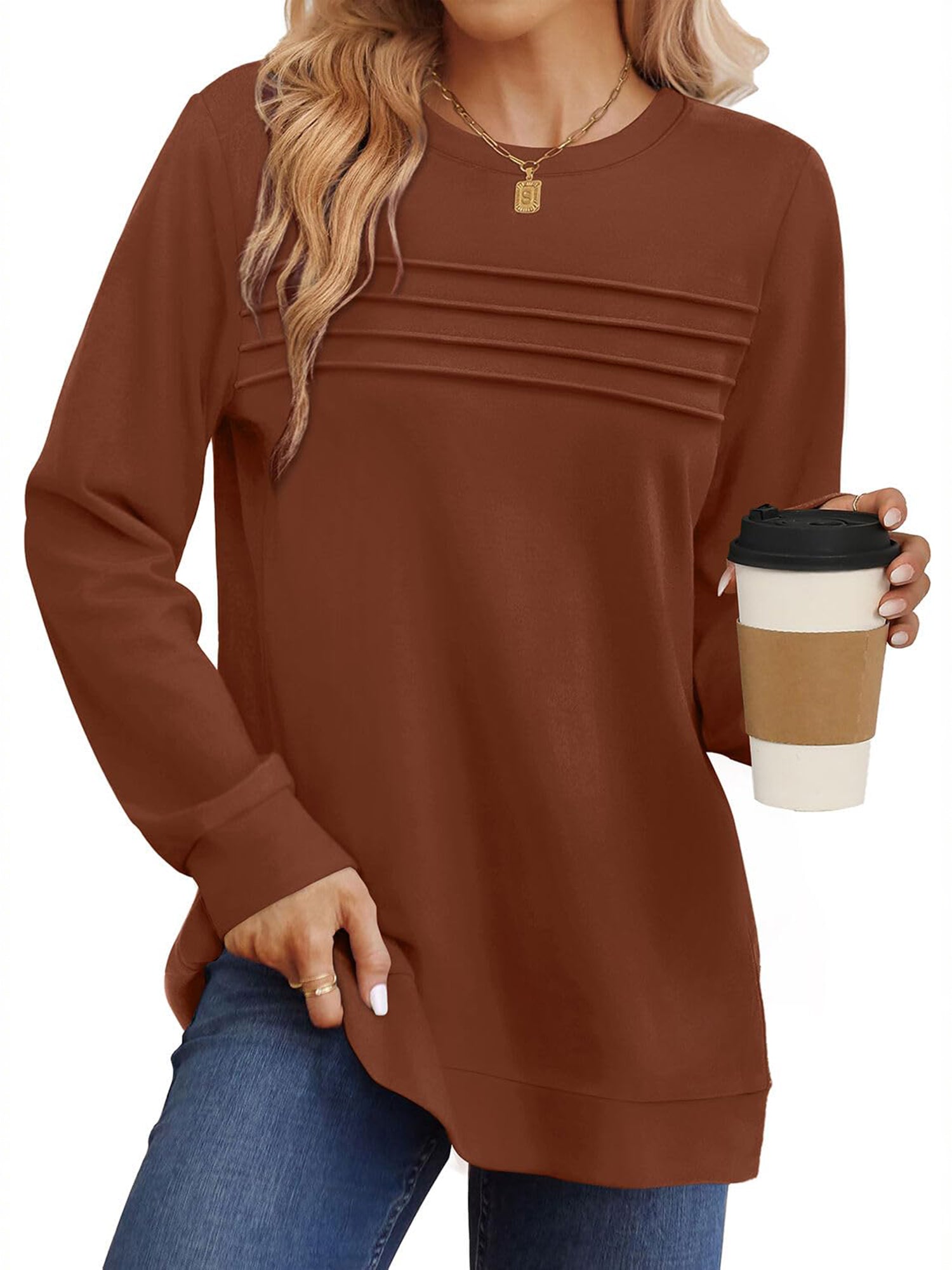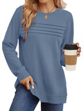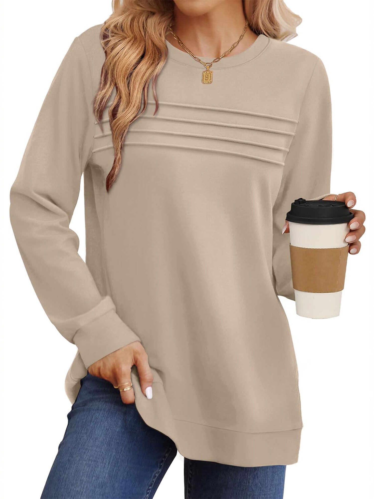 UVN Sweatshirts for Women Casual Long Sleeve Shirts Loose Fit Pleated Front Crewneck Tunic Tops
