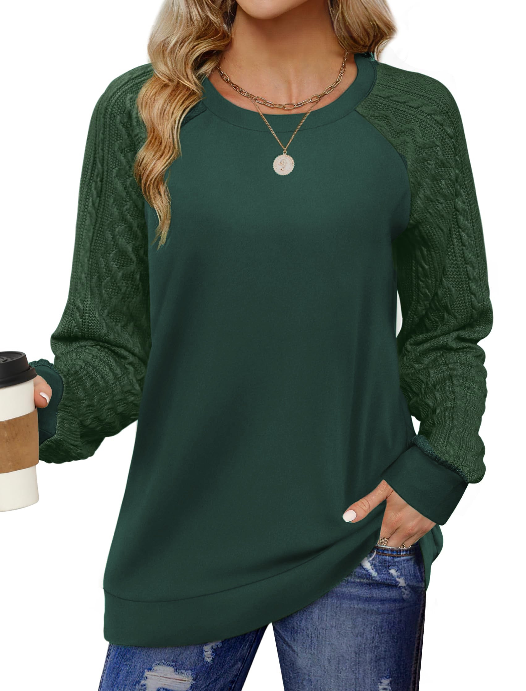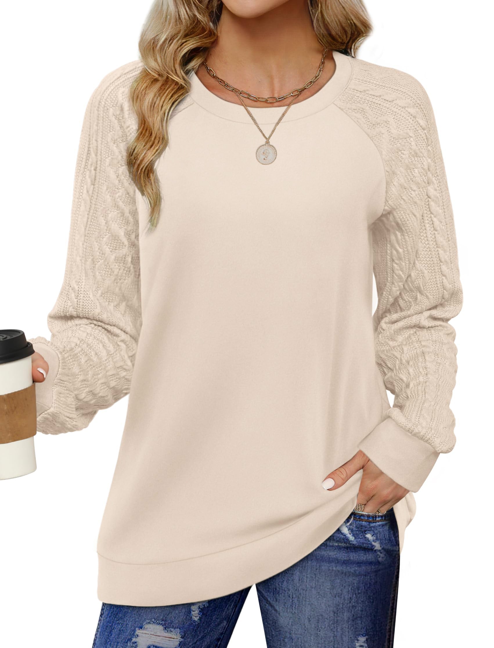 UVN Sweatshirts for Women Crewneck Cable Knit Sleeve Sweaters Casual Fall Tunic Tops