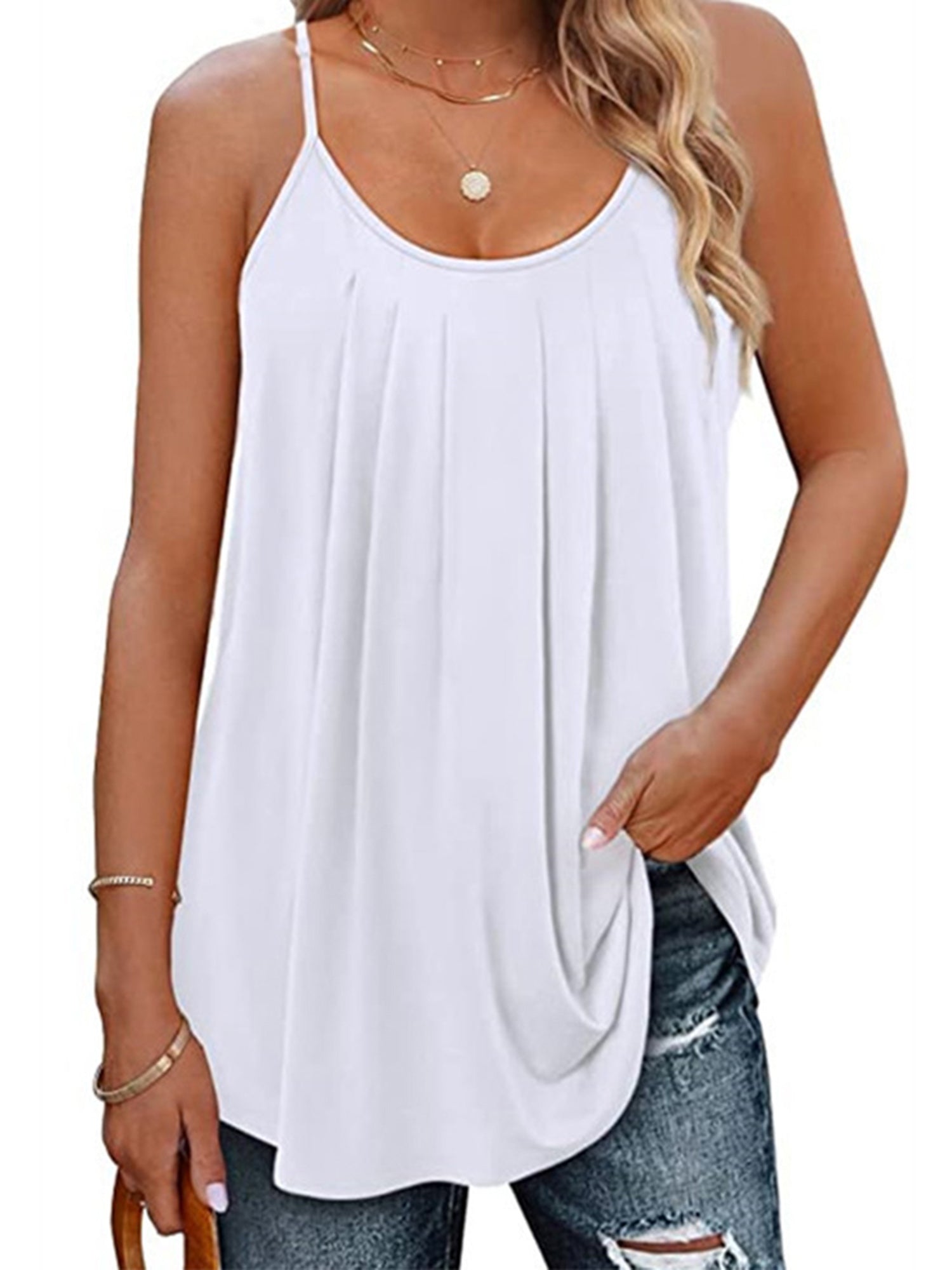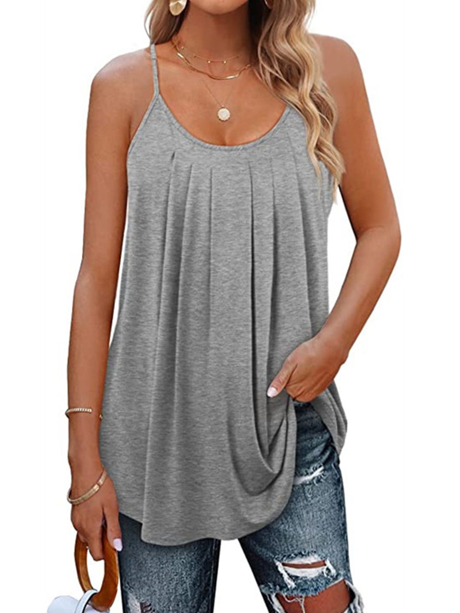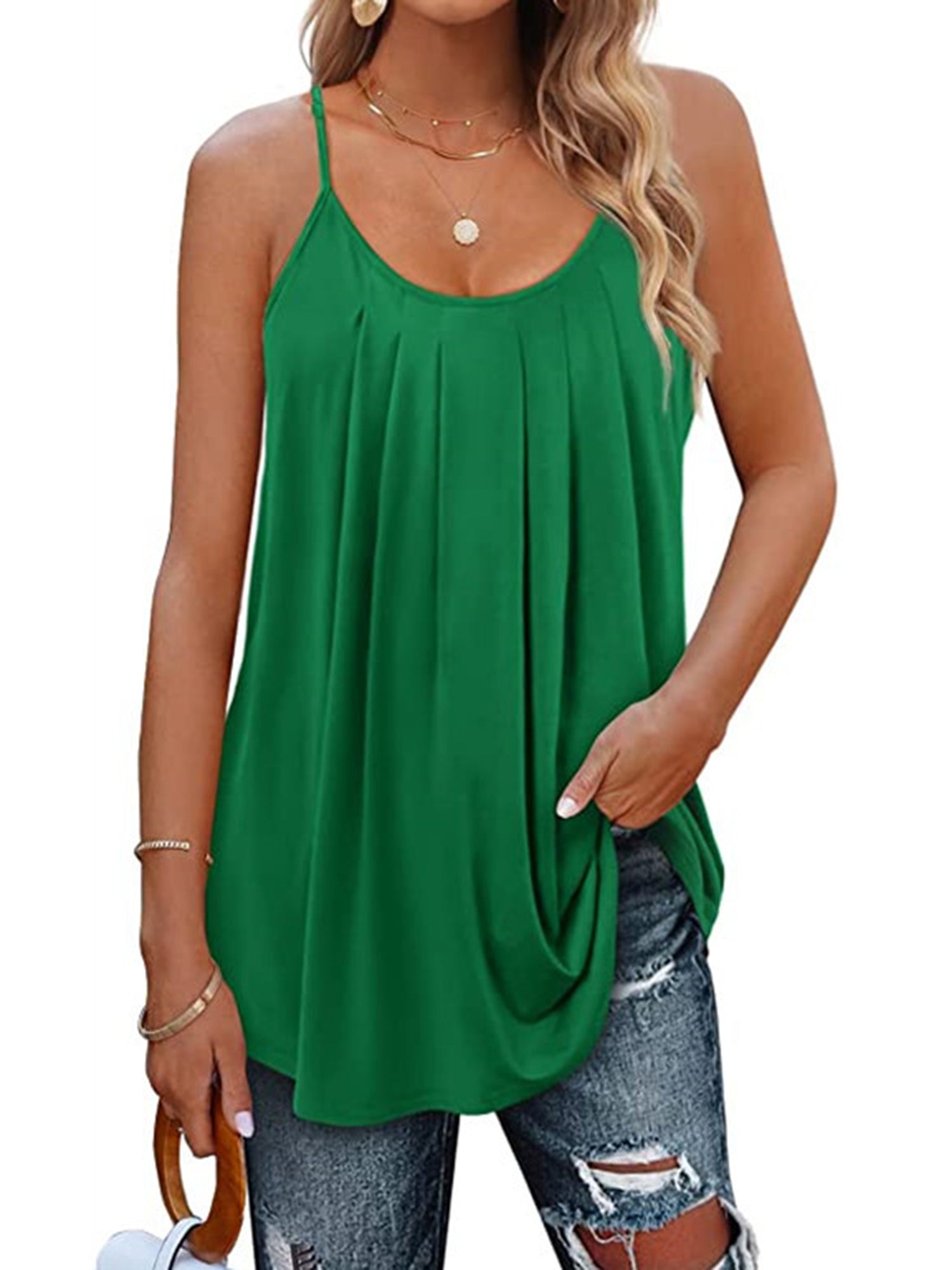 UVN Summer Tank Tops for Women Spaghetti Strap Cami Loose Fit Sleeveless Tops Ladies Casual Tops with Pleat