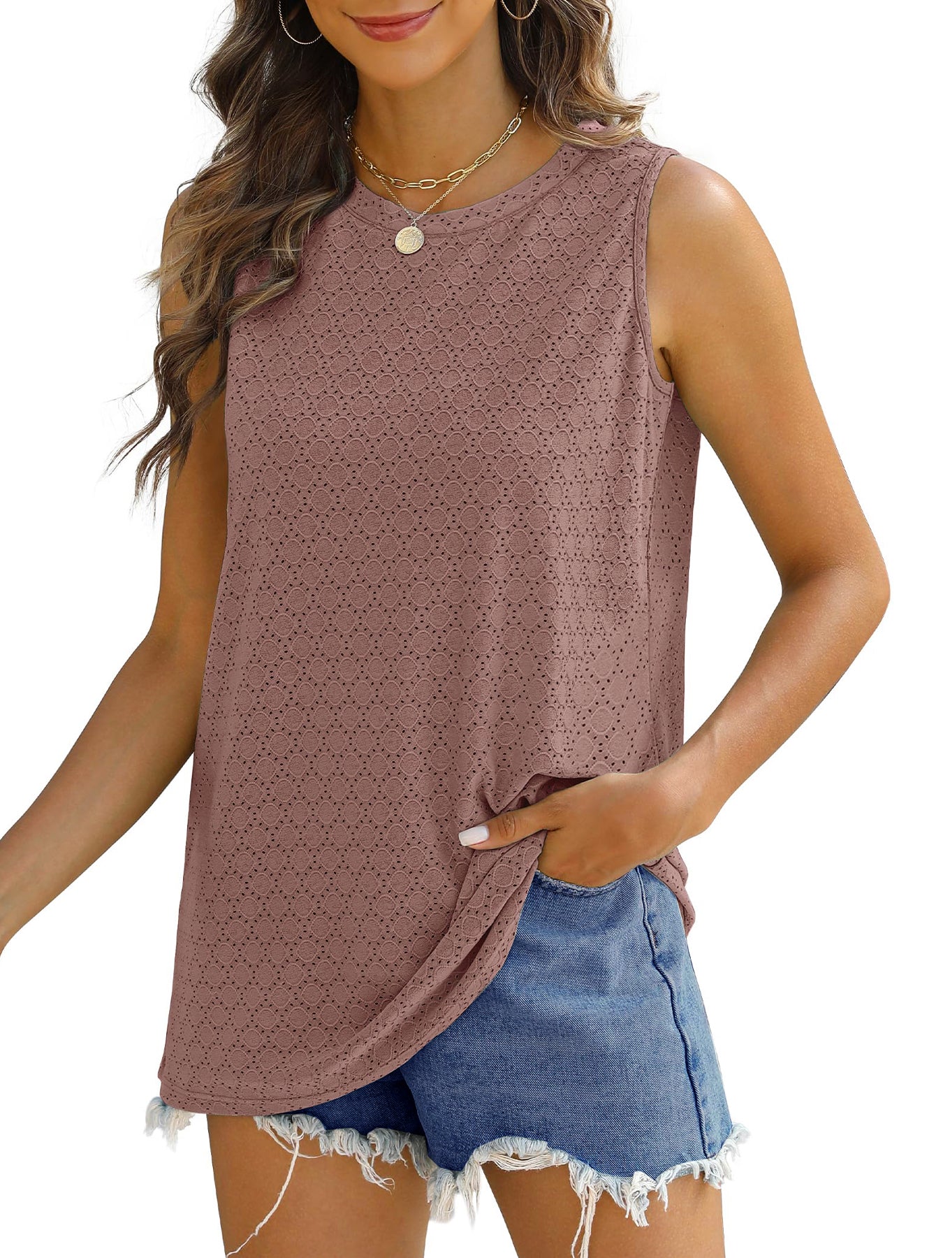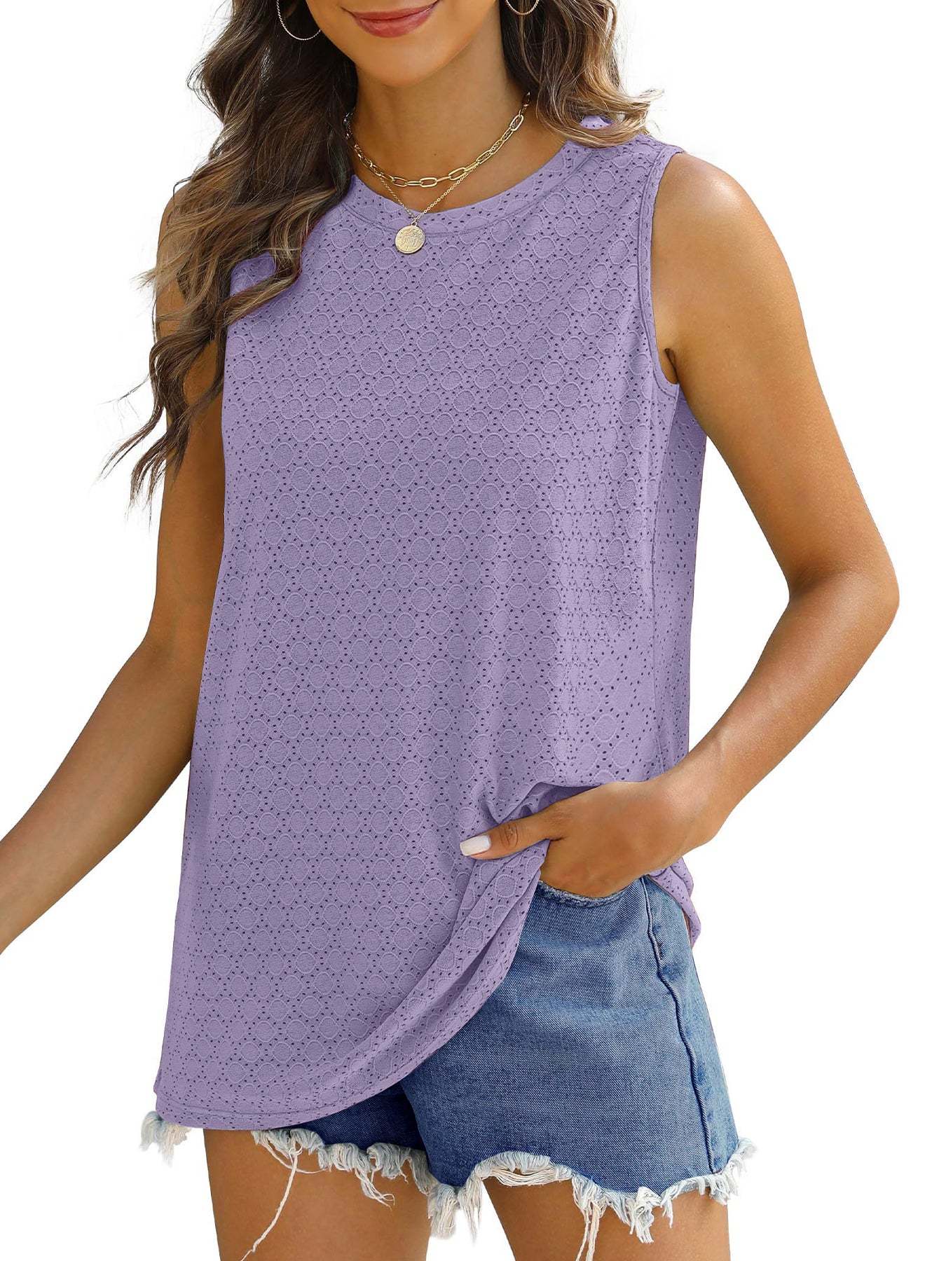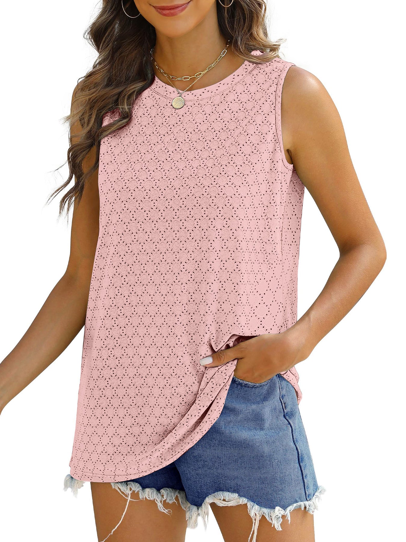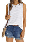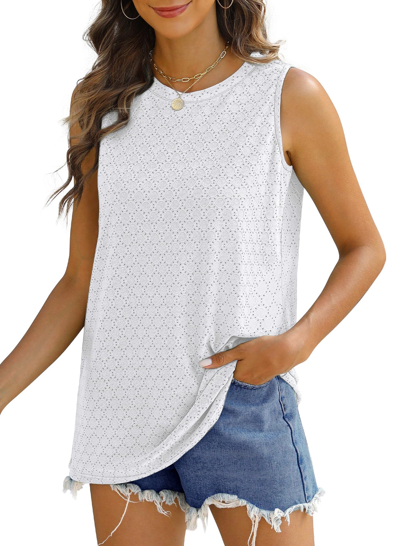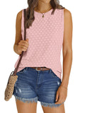 UVN Tank Tops for Women Summer Sleeveless Eyelet Blouse Casual Crew Neck Basic Tees