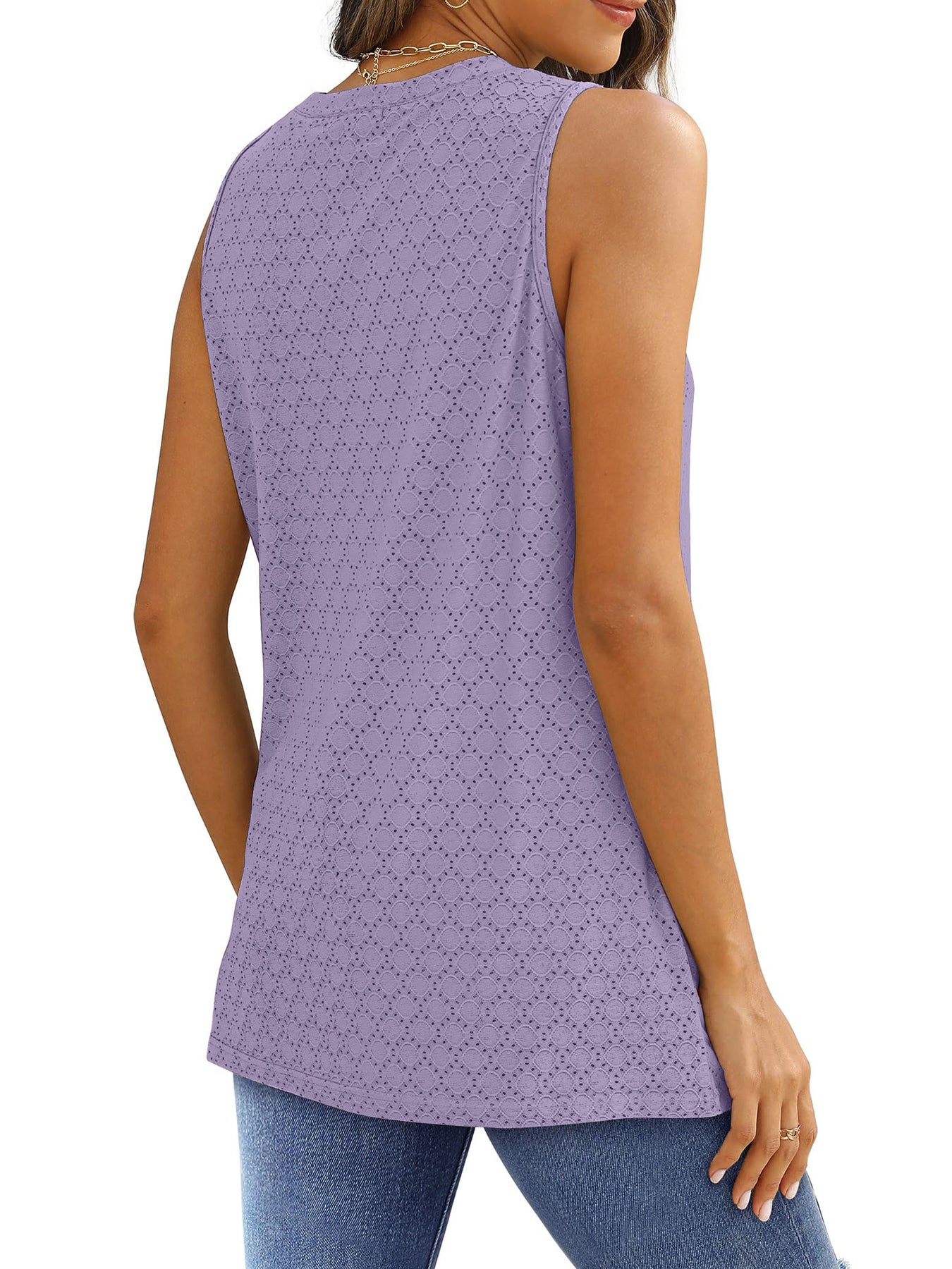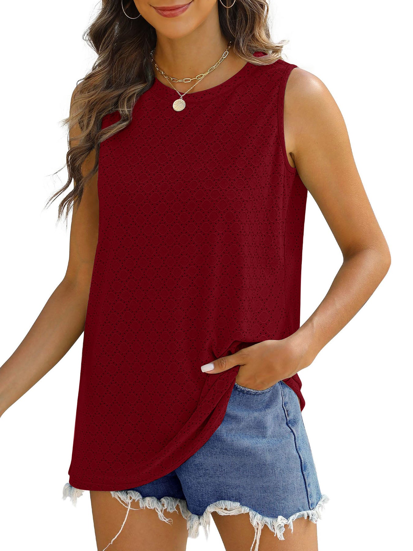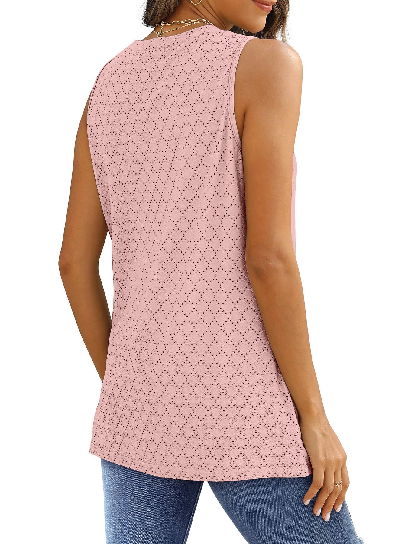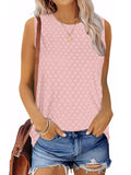 UVN Tank Tops for Women Summer Sleeveless Eyelet Blouse Casual Crew Neck Basic Tees