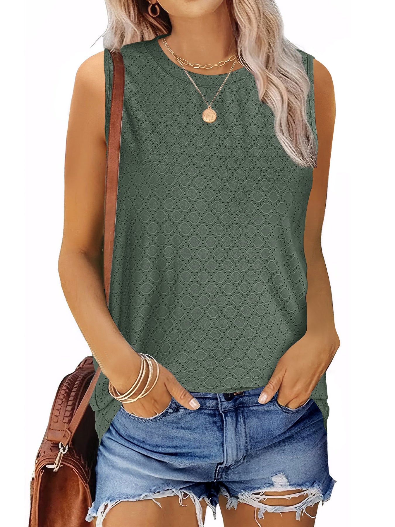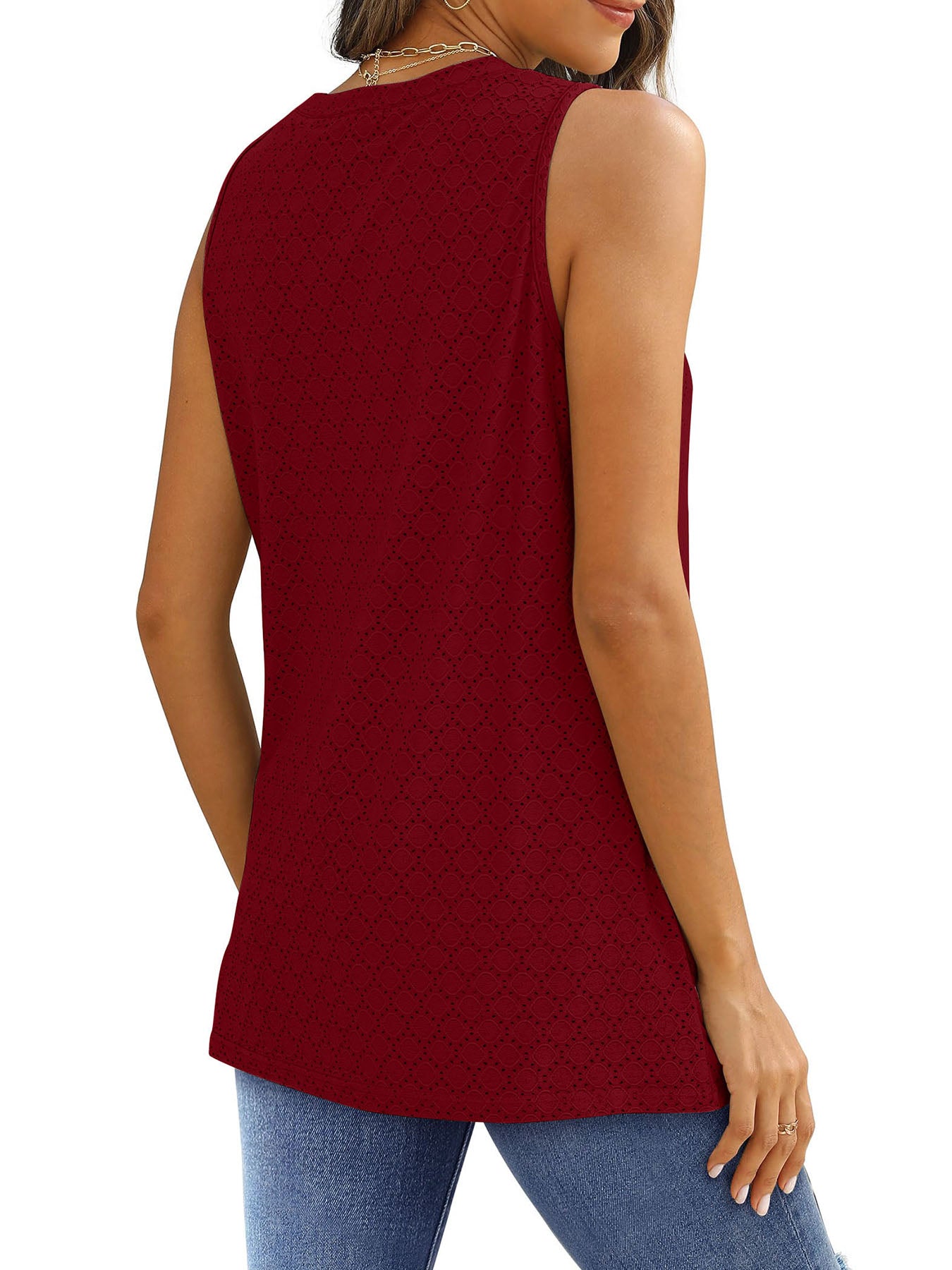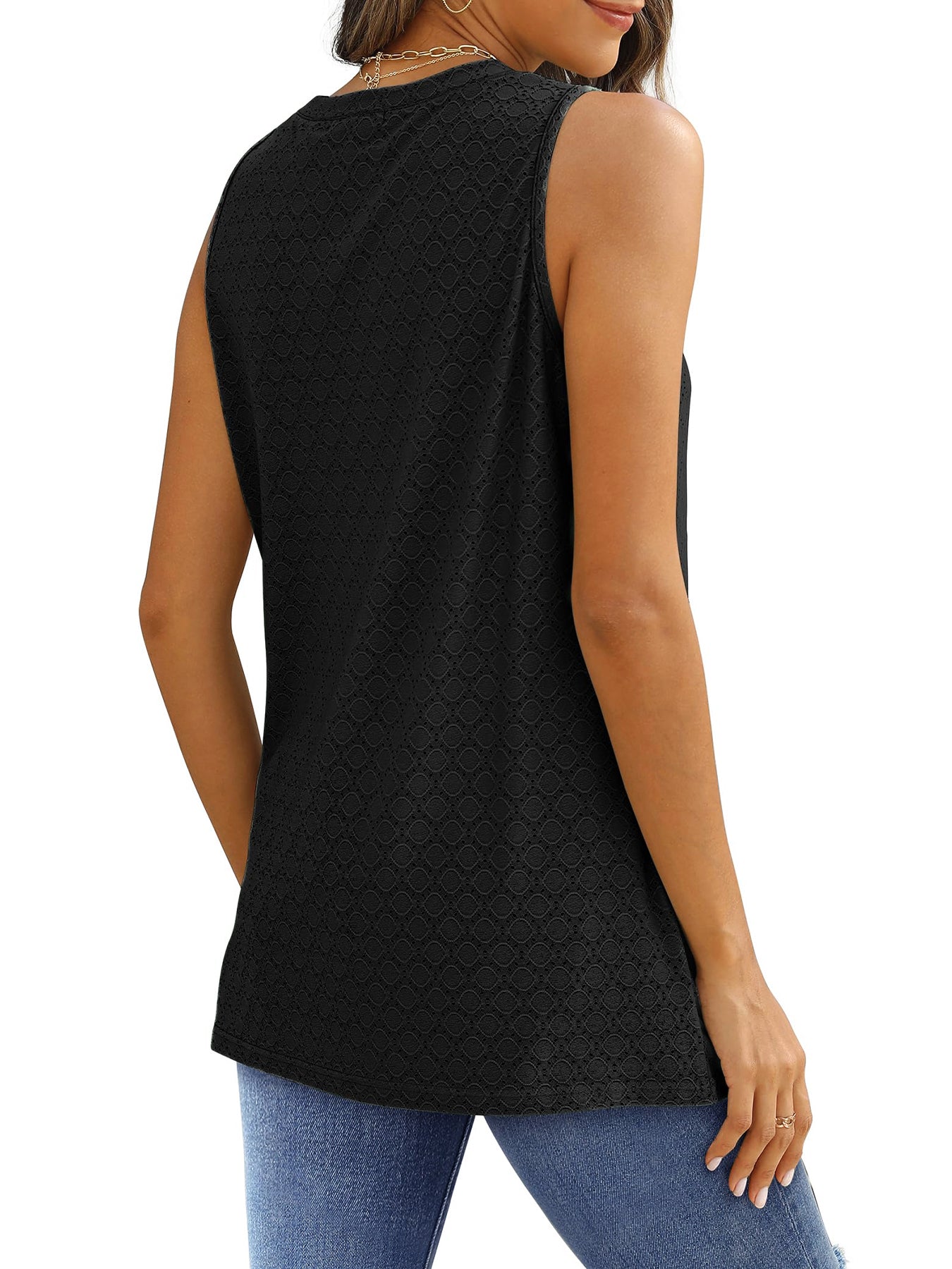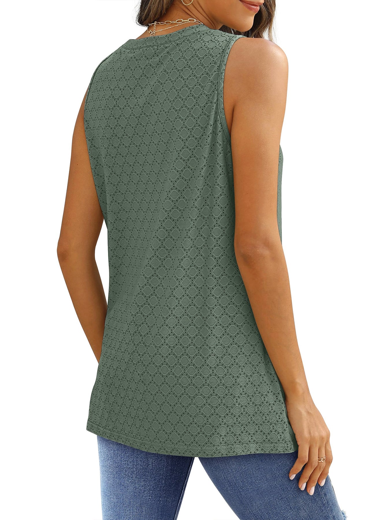 UVN Tank Tops for Women Summer Sleeveless Eyelet Blouse Casual Crew Neck Basic Tees