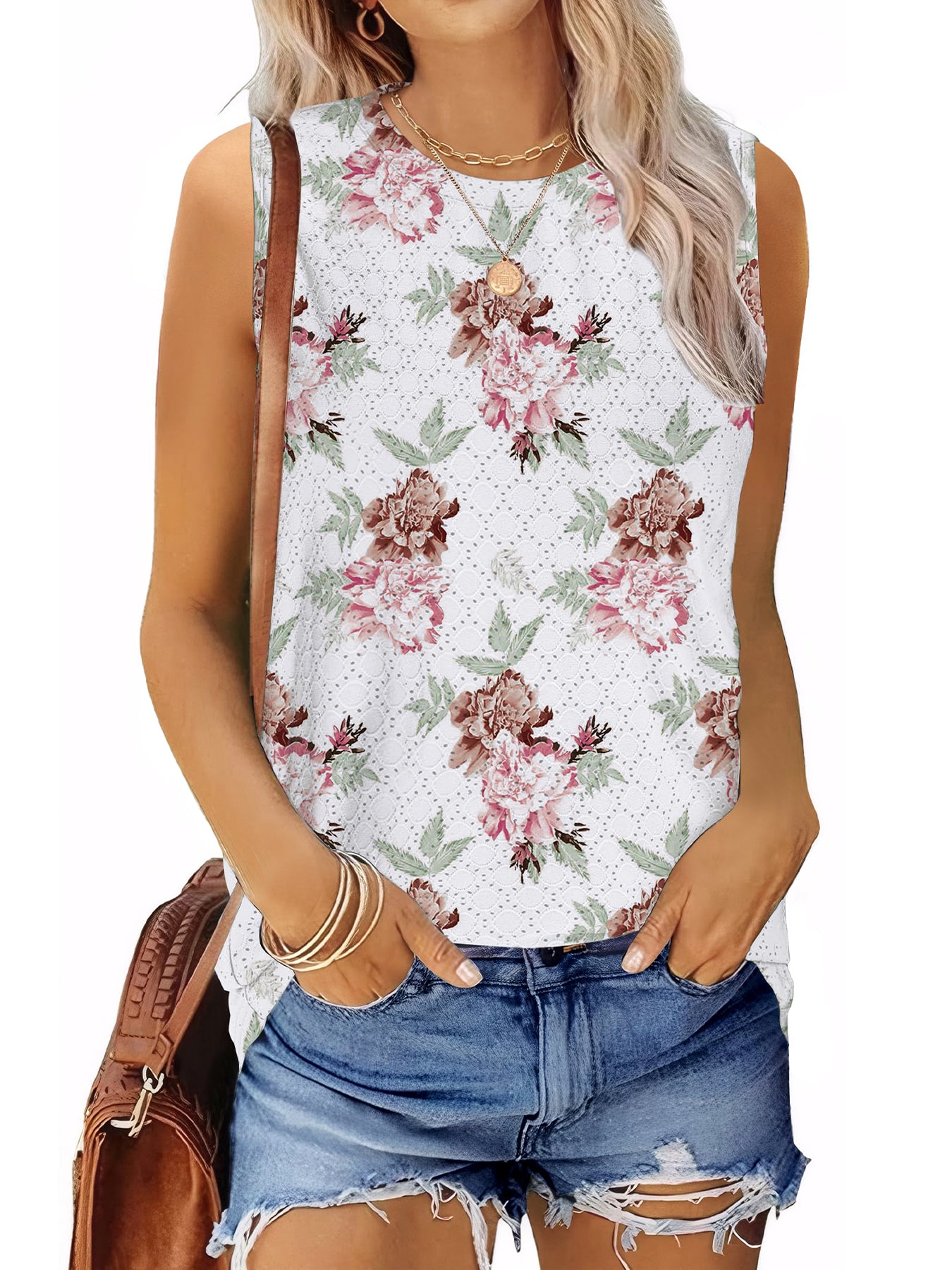 🔍【Feature】These sleeveless tops for women are designed specifically for the hot summer season, keeping you fresh and comfortable. Eyelet decoration adds a unique charm, revitalizing ordinary tops. Our sleeveless eyelet blouse allows you to freely and perfectly showcase summer fashion. The casual crew neck design is easy to match with various bottoms, suitable for all occasions. Whether you're on a beach vacation or working in an office, these tank tops can meet your needs. The simple and stylish design makes it an ideal choice for women of different ages.