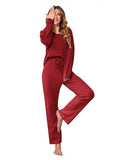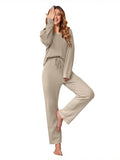 UVN Two Piece Sets for Women Casual Outfits Sets Textured Long Sleeve Shirts and Long Pants Lounge Set Fall Pajama Sets with Pockets
