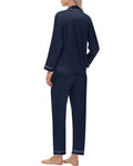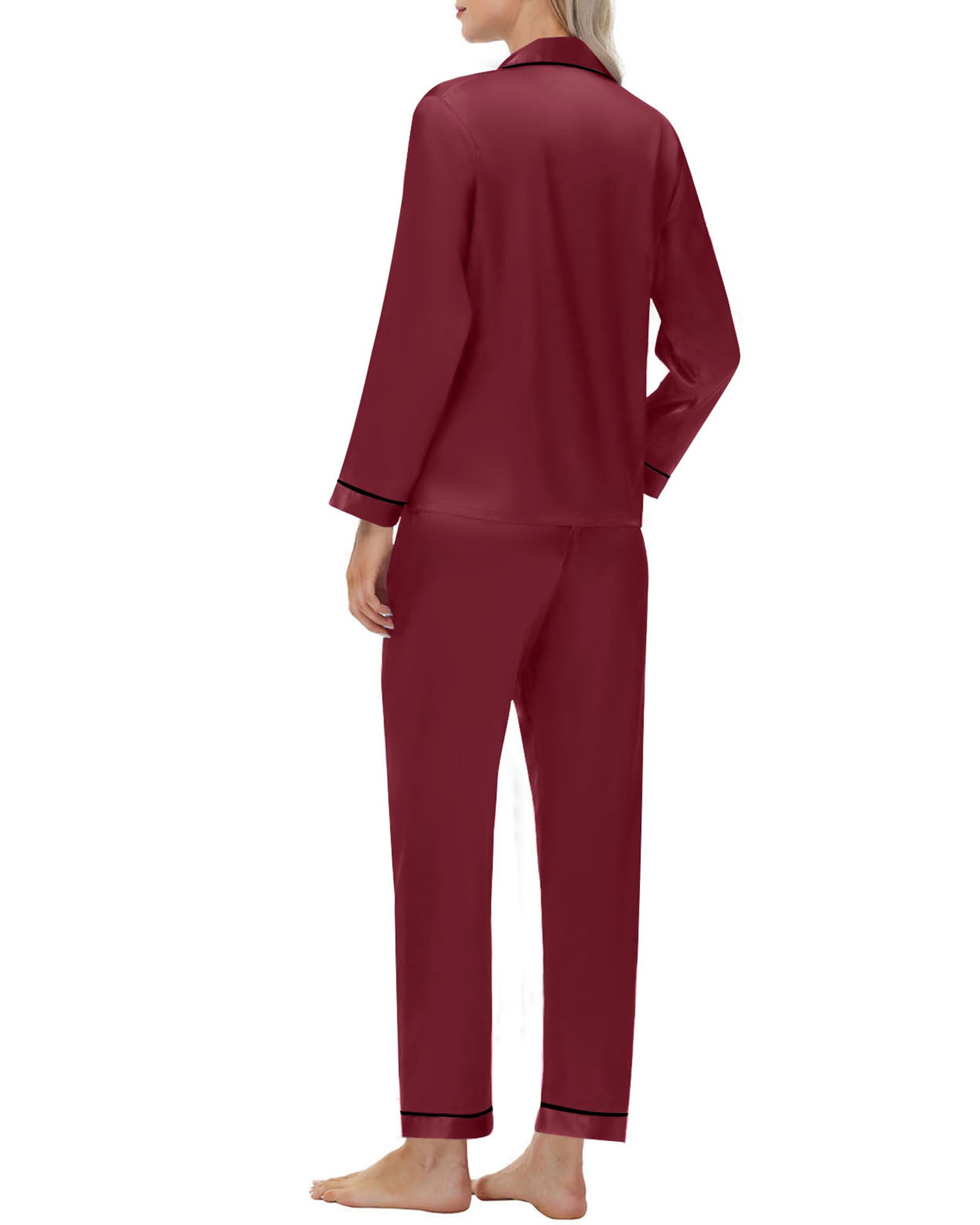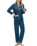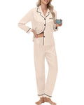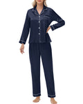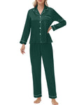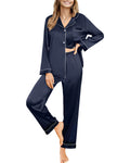 UVN Womens Pajamas Sets Long Sleeve Shirts and Long Pants Two Piece Lounge Sets Fall Satin Silk Pjs Sleepwear Outfits